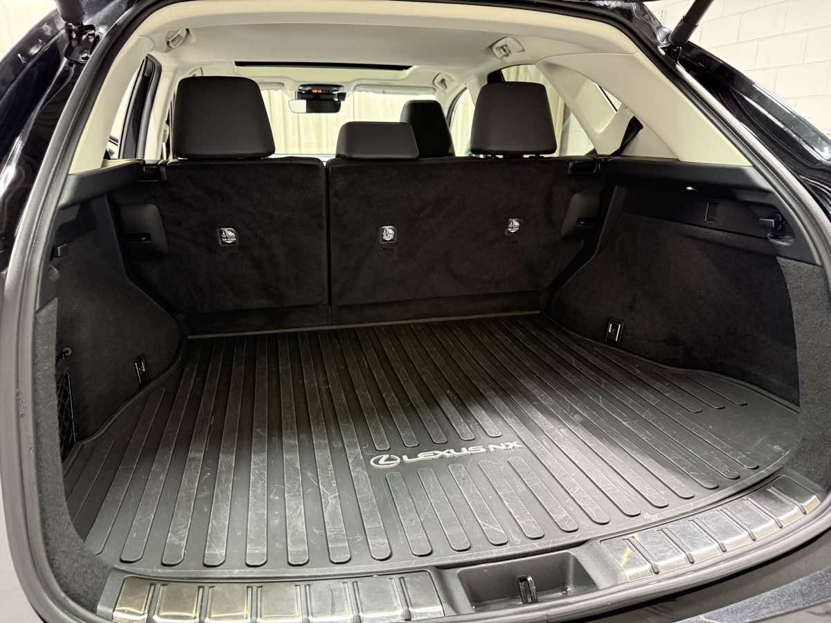 Must see, absolutely spotless 2024 Lexus NX350 all wheel drive with only 15,000 original miles. Perfect history, clean and clear title with both factory keys. Ordered in super sharp Caviar Black premium paint on black nuluxe interior, and comes loaded up with the larger 275 horsepower 2.4L engine, full time intelligent all wheel drive, power moonroof, power rear door, cold weather package, heated seats, heated steering wheel, wiper de-icer, rain sensing wipers, 9.8 inch color touchscreen, wireless apple carplay and android auto, USB, satellite radio, smartphone integration with Bluetooth, Lexus 3.0 safety sense, pre-collision system with pedestrian detection, dynamic radar adaptive cruise control with curve speed management, lane departure alert with steering assist, lane tracing assist, road sign assist, blind spot monitor, LED lights with auto high beams, folding rear seats, and so much more. Gets up to 28MPG!! Will be sold fully serviced and carries the full balance of the Lexus 6yr/70,000 mile warranty for your peace of mind. Carfax Certified for your protection!