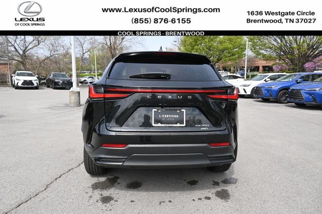 This pre-owned 2024 Lexus NX 350 Luxury is in stock and available at the dealership. The vehicle features a 2.4L I4 DOHC 16V engine, all-wheel drive, and a comfortable Palomino interior. Enjoy a smooth ride with navigation, heated seats, and a panoramic view camera. The NX 350 Luxury is designed for your convenience and comfort, with features like memory seats, a power moonroof, and wireless Apple CarPlay and Android Auto.