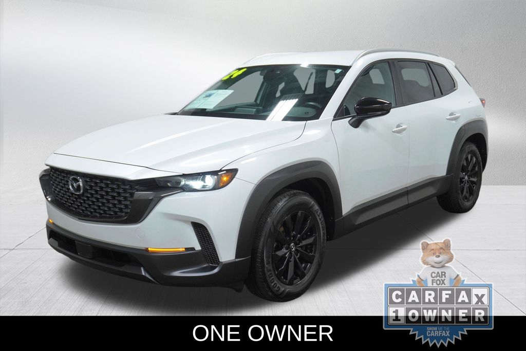 Discover the perfect blend of style, performance, and versatility with this exceptional 2024 Mazda CX-50 2.5 S Preferred Package. This one-owner SUV is a true standout, combining Mazda's renowned craftsmanship with an array of premium features that elevate the driving experience. Beneath the striking exterior, the CX-50 is powered by Mazda's renowned SKYACTIV® 2.5L 4-Cylinder DOHC 16V engine, paired with a smooth-shifting 6-Speed Automatic transmission and Intelligent All-Wheel Drive. This dynamic powertrain delivers an impressive balance of efficiency and performance, with an EPA-estimated 24 MPG in the city and 30 MPG on the highway. Stepping inside, you'll be greeted by a cabin that exudes quality and attention to detail. The half leatherette seat trim, heated front seats, and steering wheel-mounted audio controls provide a premium experience, while the Cargo Package with its Cargo Net and Cargo Blocks ensures your belongings are securely transported. The Exterior Parking Camera Rear and AppLink/Apple CarPlay and Android Auto integration further enhance the CX-50's technology and convenience. Safety is paramount in the CX-50, with features like Dual Front Impact Airbags, Dual Front Side Impact Airbags, Knee Airbag, and Electronic Stability Control providing peace of mind on every journey. The Automatic High-Beam Headlights and Rain Sensing Wipers add an extra layer of confidence, ensuring you're always prepared for changing road conditions. This 2024 Mazda CX-50 2.5 S Preferred Package is a true standout in the SUV market, offering a captivating blend of style, performance, and versatility. With its one-owner status, low mileage, and exceptional features, this vehicle is a must-see for anyone seeking a premium, well-equipped, and reliable SUV.