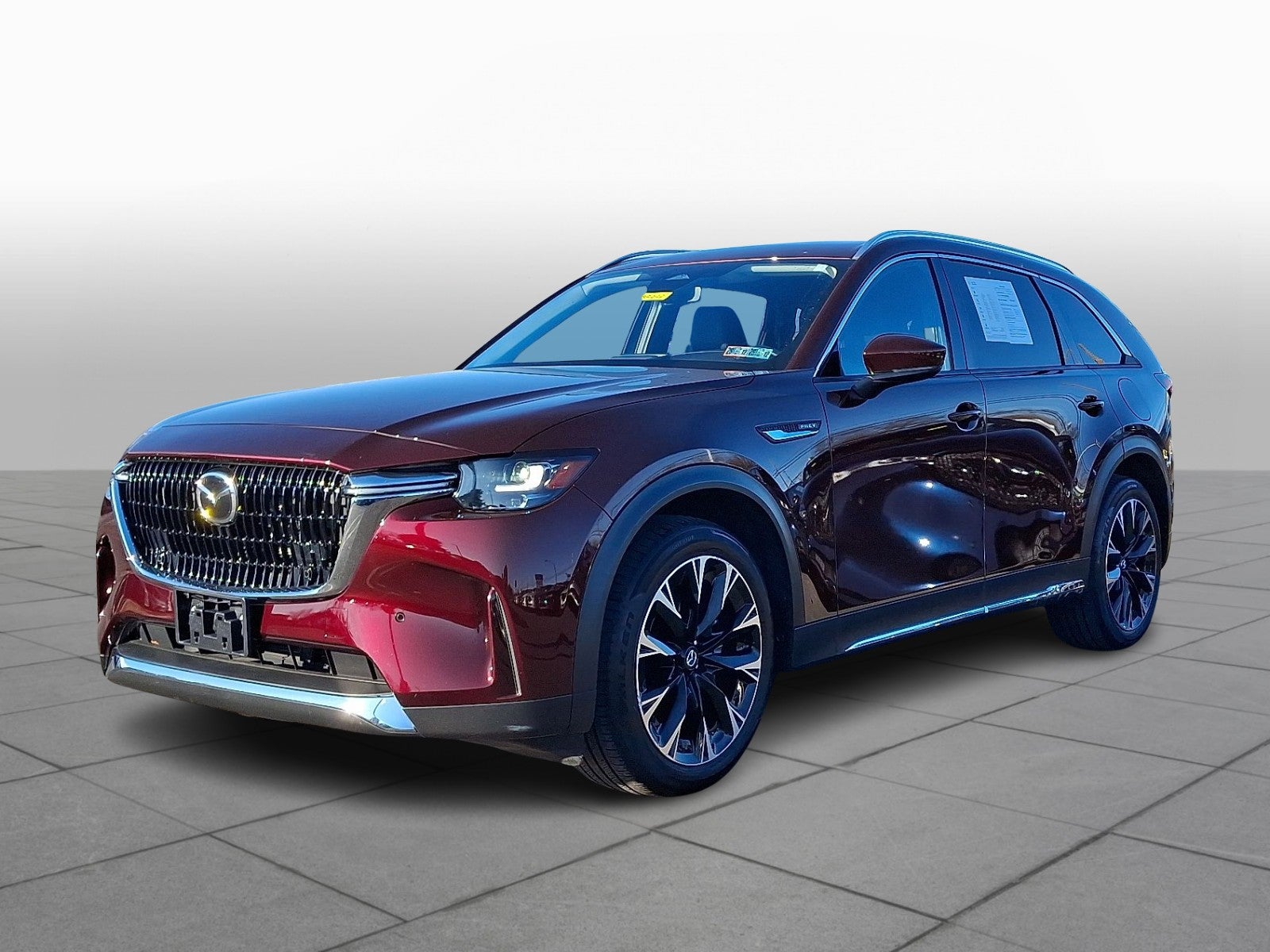 Mazda Certified Pre-Owned 2024 Mazda CX-90 PHEV Premium AWD in Artisan Red Premium with Black Leather Interior – 9798 miles. Premium Package / Interior Features: The cabin is finished in Black leather offering a refined modern and upscale environment across all three rows. Heated front seats an 8-way power driver’s seat with lumbar support a 4-way power passenger seat and tri-zone automatic climate control ensure exceptional comfort for every occupant. Second-row captain’s chairs enhance passenger comfort and provide easy access to the third row. Advanced technology includes a 12.3-inch center display with Mazda Navigation Apple CarPlay Android Auto wireless phone charging a windshield-projected Active Driving Display (head-up display) and a Bose 12-speaker premium audio system that delivers immersive crystal-clear sound. Exterior Highlights: Artisan Red Premium—Mazola’s multi-layer flagship paint—provides a deep, dramatic finish that highlights the sculpted Kodo design. The Premium trim enhances the exterior with 20-inch alloy wheels, LED signature headlights and taillights, adaptive front lighting, rear privacy glass, aluminum roof rails, heated power mirrors and a hands-free power liftgate for added convenience. Its elegant proportions and polished details create a confident and luxurious road presence.