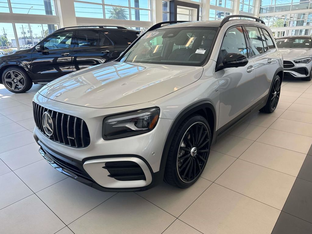 AMG Night Package (Front Splitter & Trim in High-Gloss Black), Exclusive Package (Active LED Headlamps, AMG Illuminated Door Sill Panels, Augmented Video for Navigation, MB Navigation, and Traffic Sign Assist), 12 Speakers, 19" AMG Twin 5-Spoke Wheels. Iridium Silver Metallic 2024 Mercedes-Benz GLB GLB 35 AMG 4MATIC 8-Speed Automatic I4.
