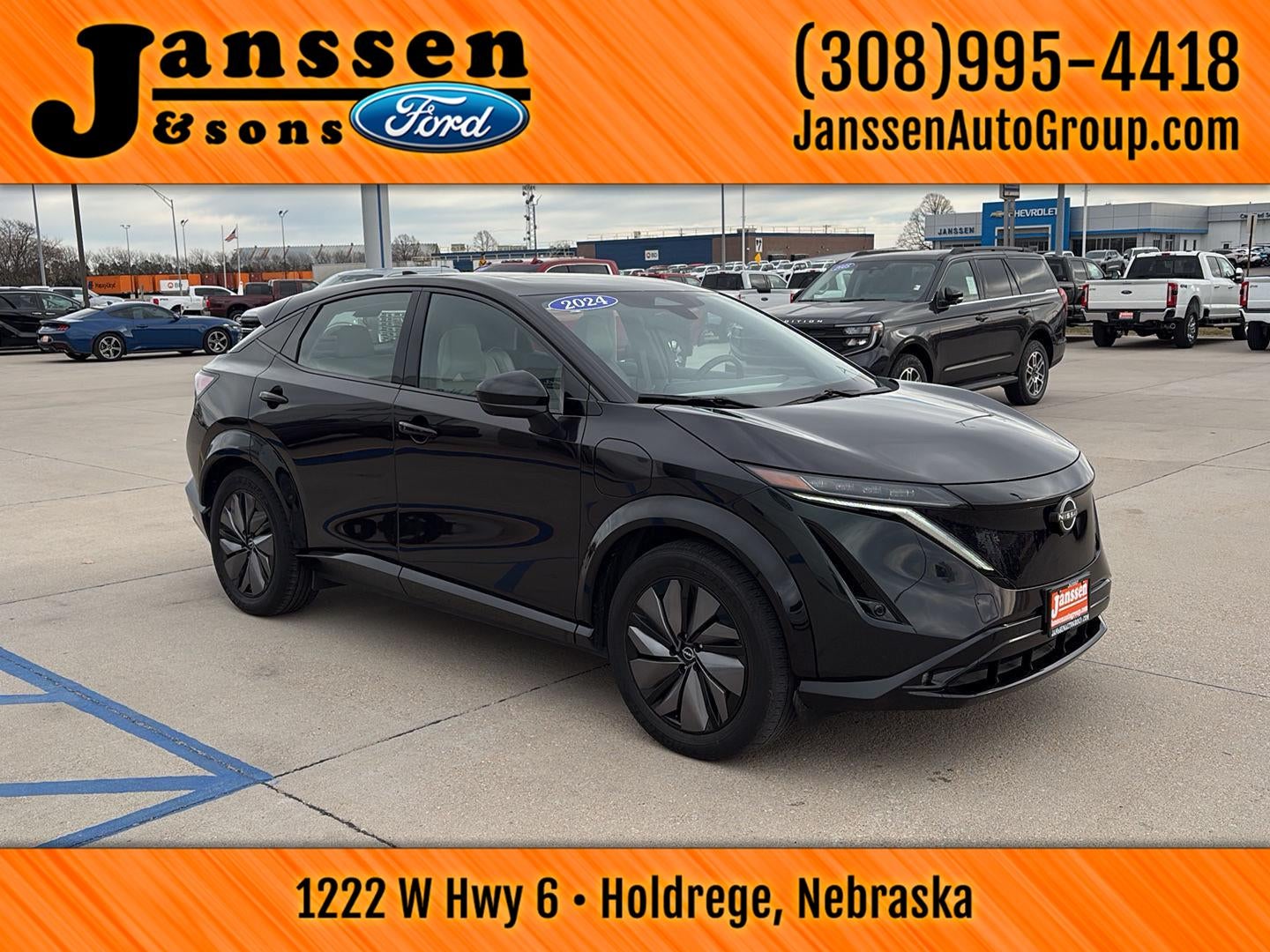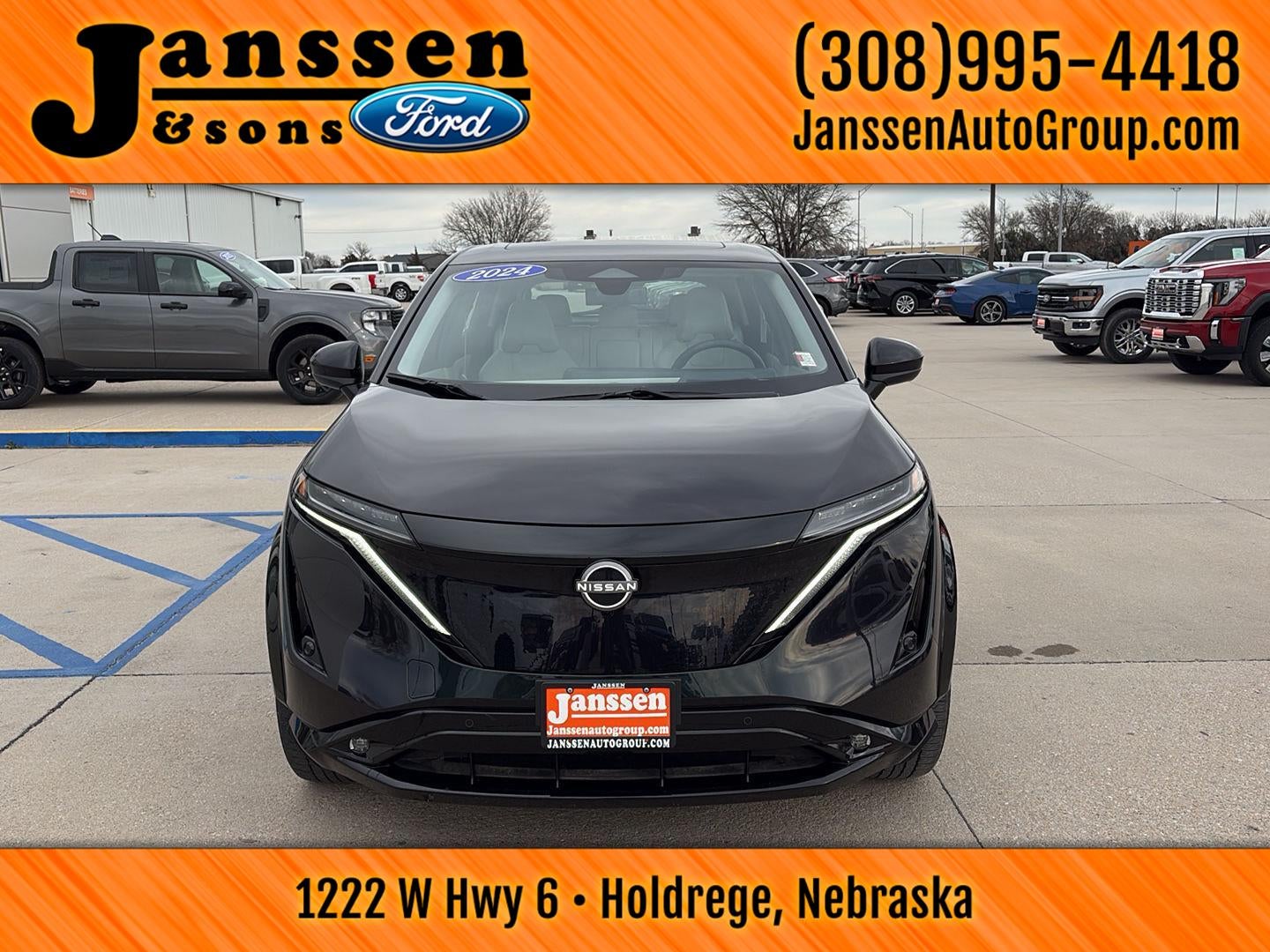 This 2024 Nissan ARIYA EVOLVE+ is offered in Northern Lights Metallic with Hai Gray interior, and has 12,924 miles. No Accidents! One Owner! NORTHERN LIGHTS METALLIC, HAI GRAY, LEATHERETTE SEATING SURFACES, [N92] ILLUMINATED KICK PLATES, [L92] CARPETED FLOOR MATS & FIRST AID KIT, [H92] NISSAN USB CHARGING CABLE SET. Please give us a call or stop by... Let us show you how we pride ourselves in consistently exceeding our customer's expectations.