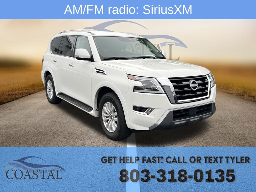 Interested? Text or Call Tyler: 803-318-0135. Local trade in. CARFAX One-Owner. Clean CARFAX. Aspen White Tricoat 2024 Nissan Armada SV RWD 7-Speed Automatic 5.6L V8 DOHC 32V LEV3-ULEV125 400hp. 3rd row seats, Alloy wheels, AM/FM radio: SiriusXM, Auto headlights, Auto temperature control, Auto-leveling suspension, BackUp Camera, Fog Lights, Heated front seats, Navigation System, Power driver seat, Power passenger seat. Recent Arrival! Pricing reflects a $6000 conditional incentive from the Market Value price. Conditional incentives require a trade-in vehicle that is approved via dealer inspection, as well as dealer-arranged financing with dealer-approved terms. Additional fees for tax, title, and license are not included. Price and terms are subject to change or cancellation at any time. Restrictions may apply. See dealer for details.