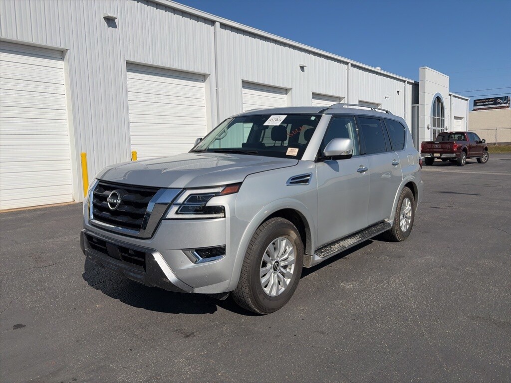 Recent Arrival! 2024 Nissan Armada SV 5.6L V8 DOHC 32V LEV3-ULEV125 400hp 7-Speed Automatic RWD Brilliant Silver Metallic Aluminum Wheels, Cargo Package, Navigation System. CARFAX One-Owner. Odometer is 27698 miles below market average! Because we value you & your time, we use a Market Based Pricing System to provide you a great value from the very beginning.