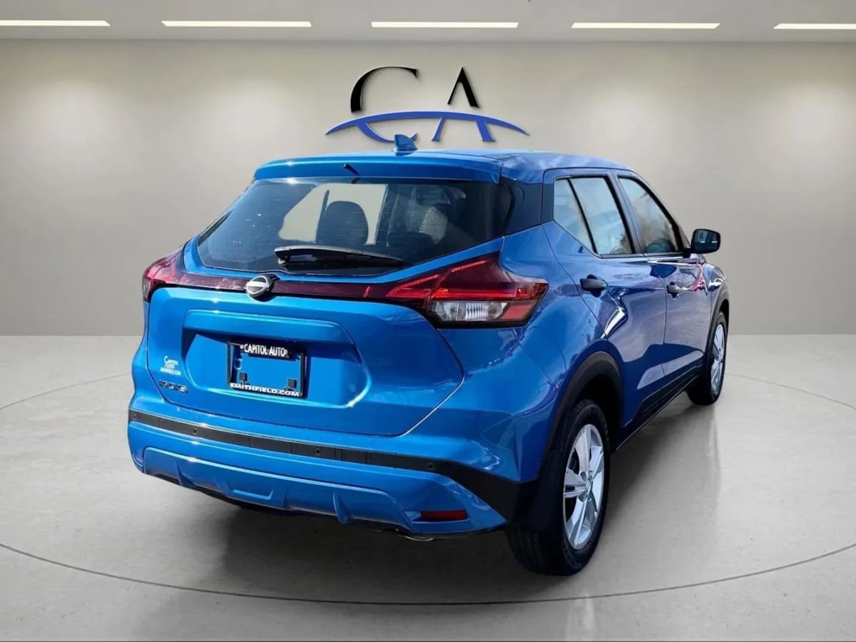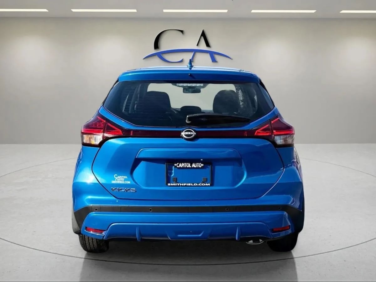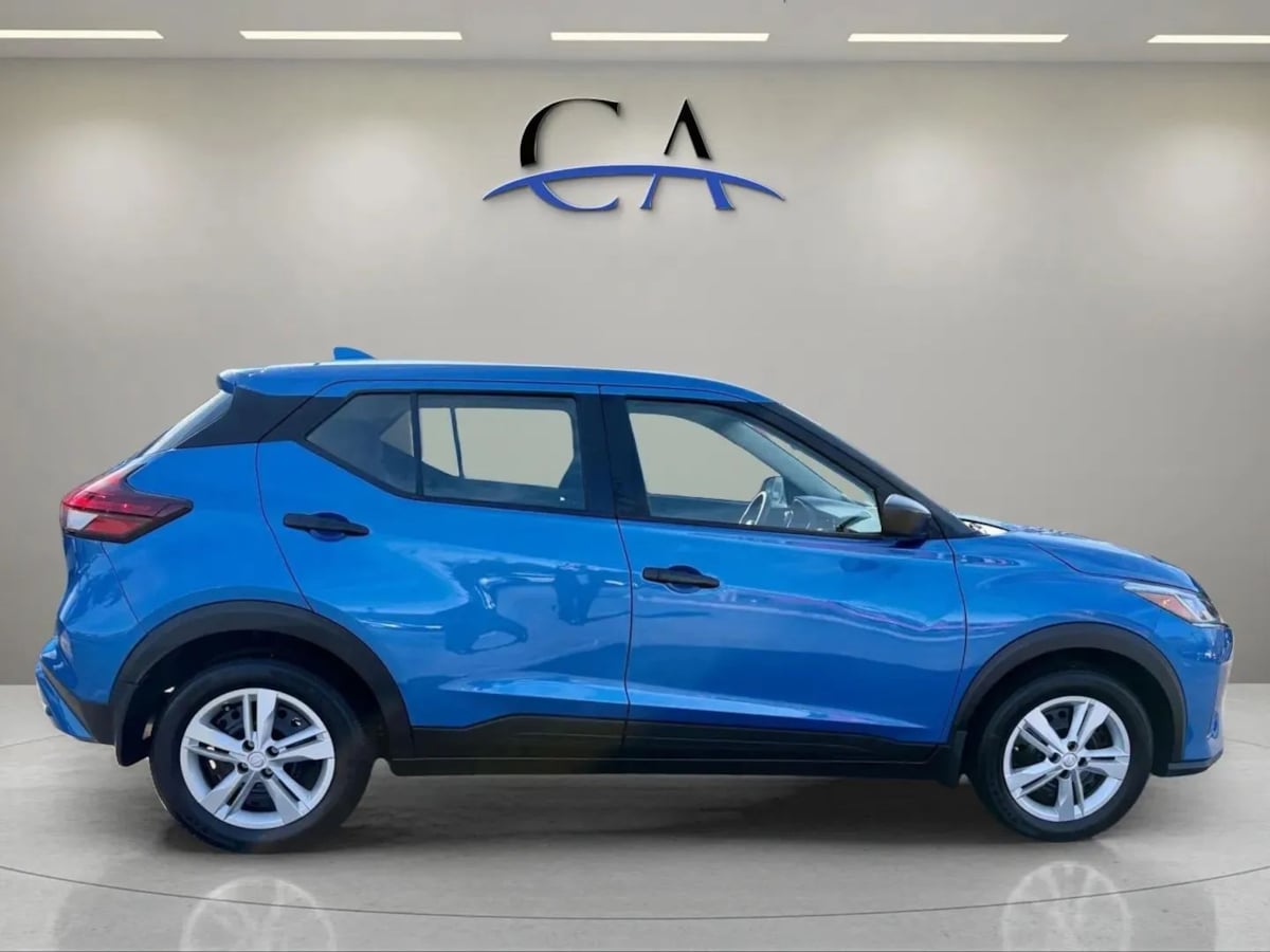 Our One Owner 2024 Nissan Kicks S can get your next adventure off to a stylish start in Electric Blue Metallic! Motivated by a 1.6 Liter 4 Cylinder that supplies 122hp paired with an Xtronic CVT tuned for urban action. This Front Wheel Drive SUV also returns nearly 36mpg on the highway with unmistakable good looks. Athletic and aggressive, our Kicks can command attention with a chrome grille, power mirrors, and strong lines. There's a bold spirit on display in our S cabin, which combines convenience and comfort with supportive cloth seats, a multifunction steering wheel, air conditioning, keyless access/ignition, and rewarding infotainment resources. Leading the way is a 7-inch touchscreen that works with Android Auto®, Apple CarPlay®, Bluetooth®, and a six-speaker sound system to help keep you connected to your world. Clever cargo space enables you to make the most of this SUV's nimble dimensions, too! Nissan knows you don't want to sacrifice safety for efficiency, so you're well-protected as you go with a rearview camera, front/rear automatic braking, lane-departure warning, a blind-spot monitor, hill-start assistance, and more. Sporty and versatile, our Kicks S is virtually irresistible! Save this Page and Call for Availability. We Know You Will Enjoy Your Test Drive Towards Ownership!