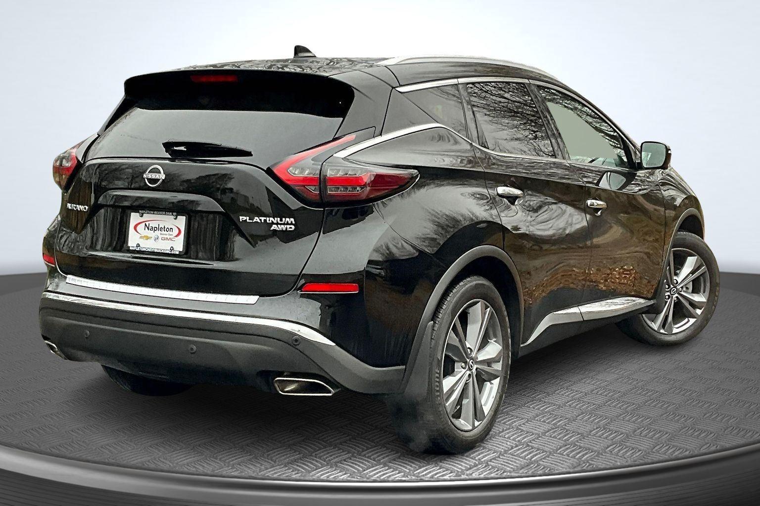 The Napleton Auto Group promotes a no pressure buying experience that puts the customer in charge of the buying process, and for over 80 years, the Napleton family has made sure that absolutely nothing is more important than our commitment to your satisfaction. Our staff members are professional in every sense of the word, and receive regular training, including factory certification, so they are truly knowledgeable about the vehicles we offer. We want every customer's experience to be as timely, comfortable and ultimately as satisfying as it possible can be. You'll see it in every department of every Napleton Auto Group dealership. We hope you'll join the thousands of other satisfied customers that buy and service their vehicles the Napleton way. No Accidents! One Owner! This 2024 Nissan Murano Platinum offered in Super Black will make a great addition to your family or business!