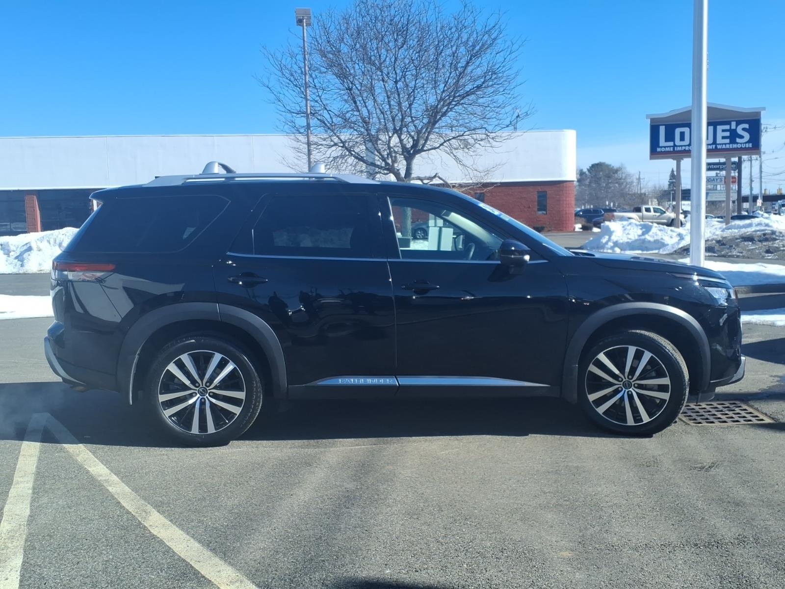 Super Black exterior and Charcoal interior, Platinum trim. CARFAX 1-Owner, GREAT MILES 16,243! FUEL EFFICIENT 25 MPG Hwy/20 MPG City! Heated Leather Seats, Moonroof, Nav System, Third Row Seat, Rear Air, Panoramic Roof, Power Liftgate, Aluminum Wheels, [B93] CROSS BARS, 4x4. AND MORE! Sale price is contingent on in-house standard rate financing. See dealer for details. Service Work completed on this Nissan Pathfinder included: Complete Multi-Point Inspection, Oil & Filter Change by a Factory Trained Technician, Battery Voltage Test, Windshield Wiper Blades Replaced, Tires Inspected, Brake Inspection, Engine Air Filter Replaced, Cabin Air Filter Replaced, Emissions System Check, Professional Detailed Inside and Out, Function Test all Lights, Check the Complete Exhaust System, Cooling System Inspection, Transmission Fluid Inspection, Differential Fluid Inspection, Engine Drive Belts Replaced, Function Test all Options & Accessories. Nissan Platinum with Super Black exterior and Charcoal interior features a V6 Cylinder Engine with 284 HP at 6400 RPM. Great Gas Mileage: 25 MPG Hwy. We Make It Easy. If we advertise it, well have it when you get here. Its easy, its honest and its guaranteed! Contact us at 978-774-1000 for more information or to schedule a test drive.