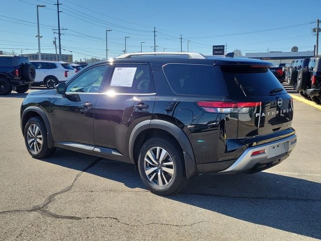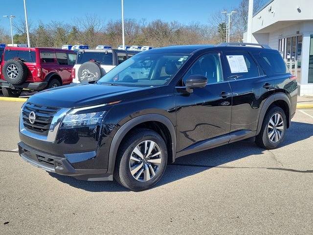 CARFAX One-Owner. Clean CARFAX. Super Black 2024 Nissan Pathfinder SL 4WD 9-Speed Automatic 3.5L V6 DOHC Pathfinder SL, 4D Sport Utility, 3.5L V6 DOHC, 9-Speed Automatic, 4WD, Super Black, Charcoal Leather, 4-Wheel Disc Brakes, 6 Speakers, ABS brakes, Air Conditioning, Alloy wheels, AM/FM radio: SiriusXM, Auto High-beam Headlights, Automatic temperature control, Brake assist, Delay-off headlights, Dual front impact airbags, Dual front side impact airbags, Electronic Stability Control, Emergency communication system, Exterior Parking Camera Rear, Four wheel independent suspension, Front anti-roll bar, Front dual zone A/C, Fully automatic headlights, Knee airbag, Leather-Appointed Seating Surfaces, Low tire pressure warning, Navigation system: NissanConnect with Navigation and Services, Occupant sensing airbag, Overhead airbag, Panic alarm, Power Liftgate, Power steering, Power windows, Rear air conditioning, Rear anti-roll bar, Rear side impact airbag, Rear window defroster, Remote keyless entry, Speed control, Speed-sensing steering, Steering wheel mounted audio controls, Traction control. Recent Arrival! Odometer is 16897 miles below market average! 21/27 City/Highway MPG Proudly Serving: Cincinnati, Dayton, Columbus, Louisville, Lexington, Indianapolis, Hamilton, Florence, Alexandria, Beavercreek, Springdale.