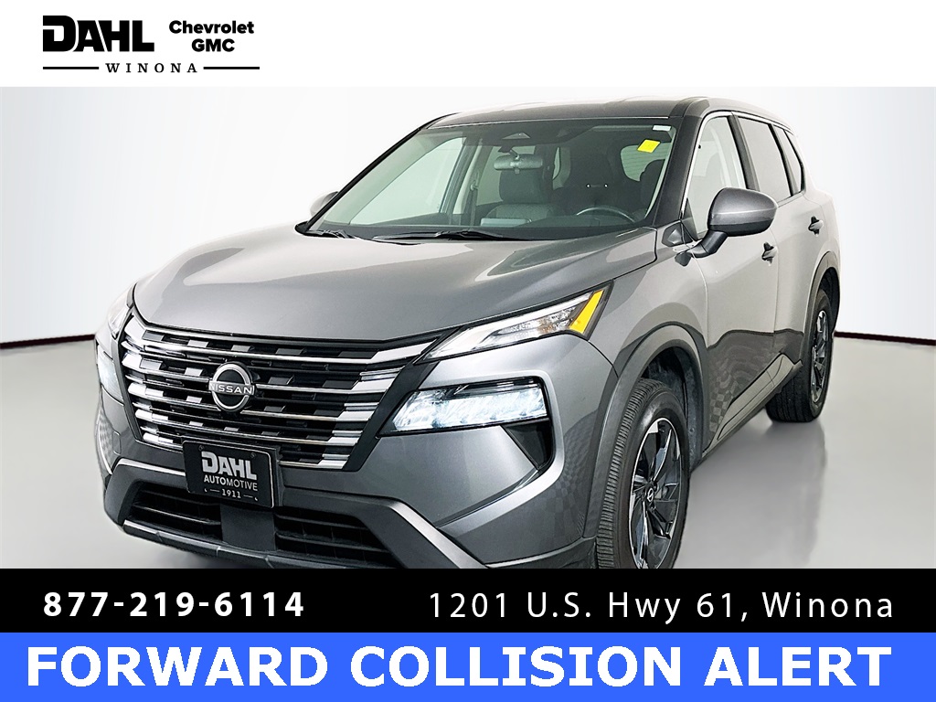 2024 Gun Metallic Nissan Rogue SV SV AWD 1.5L DOHC For sale at DAHL Chevrolet Buick GMC in Winona Minnesota., The standout features for this Nissan Rogue are, +One Owner+, +No Accidents+, +Blind-Spot Monitors+, +All Wheel Drive+, +Lane Departure Warning+, +Apple Car Play/Android Auto+, Touchscreen Controls, Backup Camera, Keyless Access with Push Button Start, Automatic Headlights, Non-Smoker, 6 Speakers, Alloy wheels, AM/FM radio: SiriusXM, Auto High-beam Headlights, Automatic temperature control, Cloth Seat Trim w/Patterned Inserts, Front Bucket Seats, Front Center Armrest, Fully automatic headlights, Heated door mirrors, Low tire pressure warning, Power driver seat, Power Liftgate, Rear Parking Sensors, Rear window defroster, Remote keyless entry, Split folding rear seat, Steering wheel mounted audio controls, Telescoping steering wheel, Tilt steering wheel, Wheels: 18" Dark Painted Machine Finished Alloy.