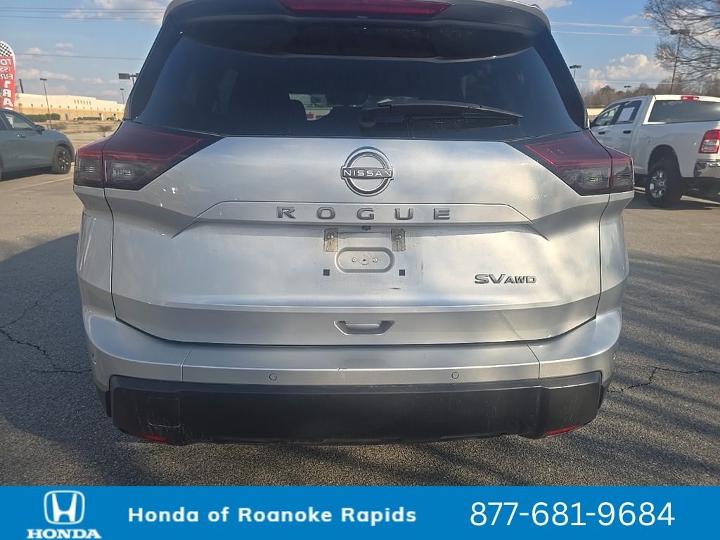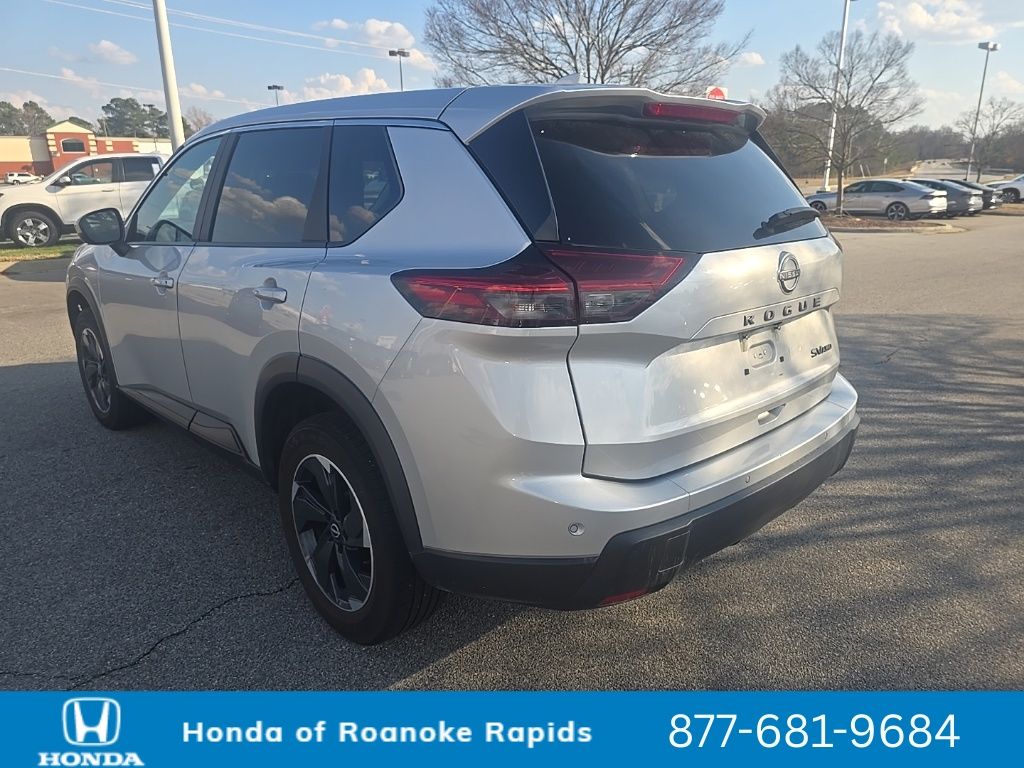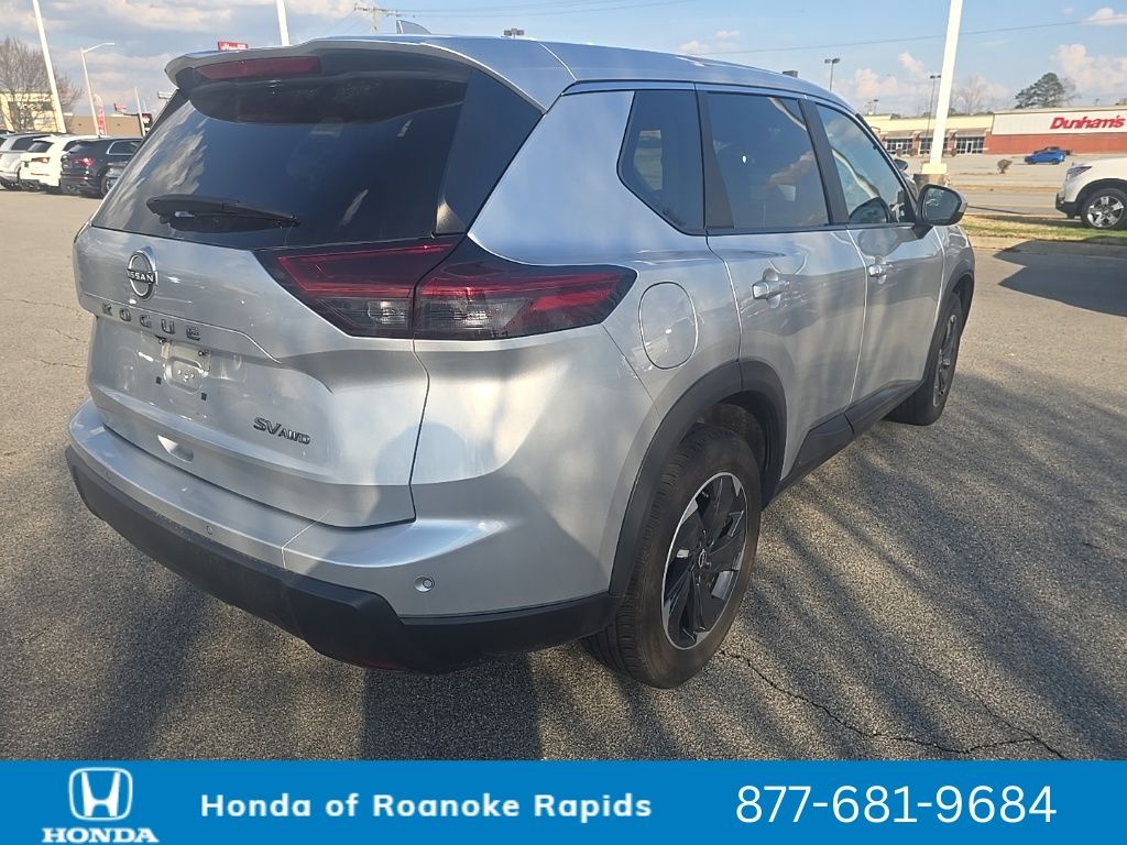 Recent Arrival! Carfax One-Owner. Brilliant Silver Metallic 2024 Nissan Rogue SV 4D Sport Utility AWD 1.5L DOHC CVT with Xtronic. AWD, 4-Wheel Disc Brakes, 5.676 Axle Ratio, 6 Speakers, ABS brakes, Air Conditioning, Alloy wheels, AM/FM radio: SiriusXM, Auto High-beam Headlights, Automatic temperature control, Brake assist, Bumpers: body-color, Cloth Seat Trim w/Patterned Inserts, Driver door bin, Driver vanity mirror, Driver vanity mirror, Dual front impact airbags, Dual front impact airmaget, Dual front impact airmaget, Electronic Stability Control, Emergency communication system: NissanConnect Services, First Aid Kit, Floor Mats w/1-Piece Cargo Area Protector, Four wheel independent suspension, Front anti-roll bar, Front Bucket Seats, Front Center Armrest, Front dual zone A/C, Front reading lights, Fully automatic headlights, Heated door mirrors, Illuminated entry, Knee airbag, Low tire pressure warning, NissanConnect featuring Apple CarPlay and Android Auto, Occupant sensing airbag, Outside temperature display, Overhead airbag, Overhead console, Panic alarm, Passenger door bin, Passenger vanity mirror, Power door mirrors, Power driver seat, Power Liftgate, Power steering, Power windows, Radio data system, Radio: AM/FM NissanConnect, Rear anti-roll bar, Rear Parking Sensors, Rear seat center armrest, Rear side impact airbag, Rear window defroster, Rear window wiper, Remote keyless entry, Speed control, Speed-Sensitive Wipers, Split folding rear seat, Spoiler, Steering wheel mounted audio controls, Tachometer, Telescoping steering wheel, Tilt steering wheel, Traction control, Trip computer.