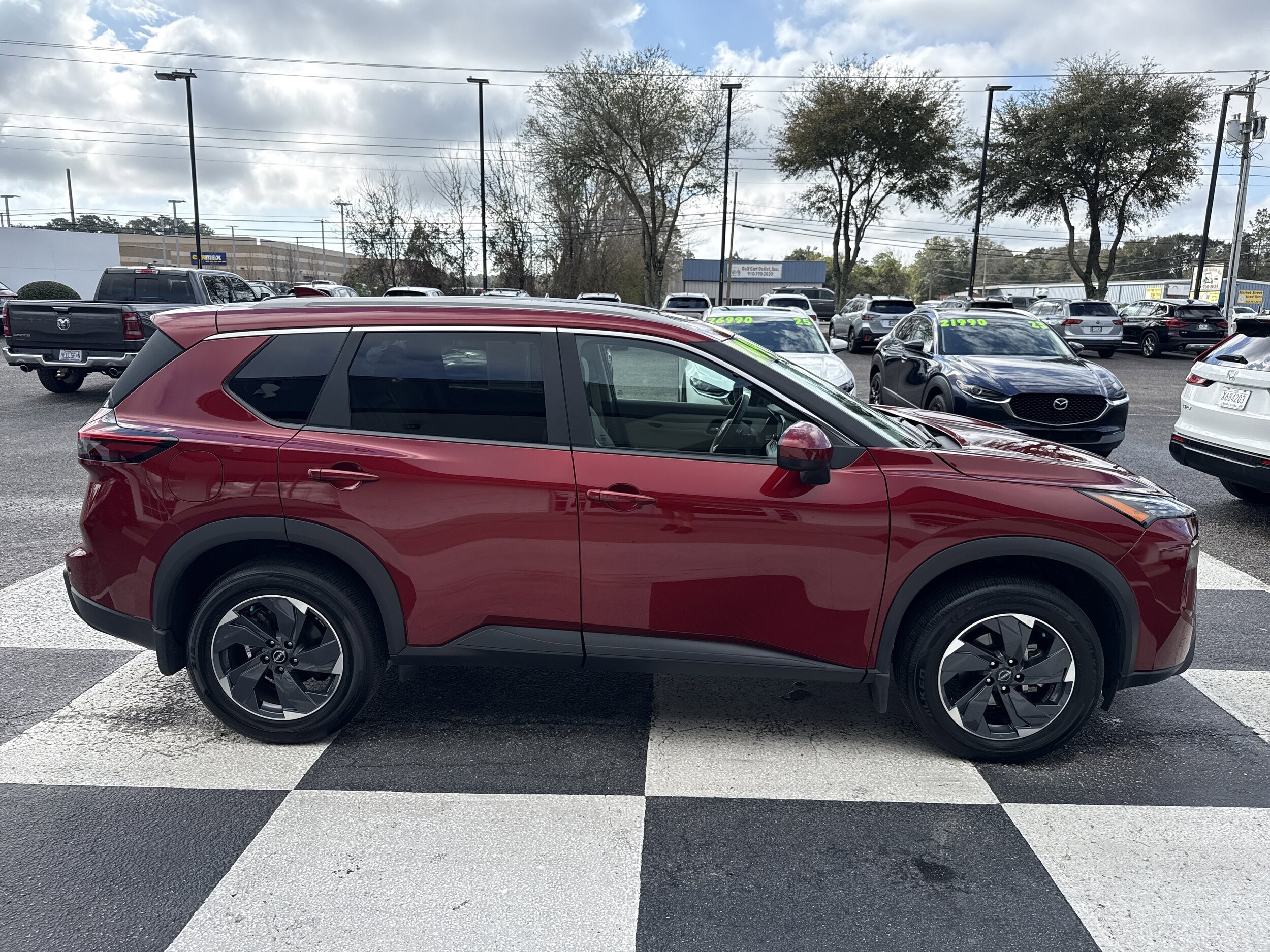 Only 5,433 Miles! Delivers 37 Highway MPG and 30 City MPG! This Nissan Rogue boasts an intercooled turbo regular unleaded I-3 1.5 L/91 engine powering this variable transmission. Scarlet Ember Tintcoat, SV Premium Package -inc: Heated Front Seats, Rear Door Sunshades, Silver Painted Roof Rails, Panoramic Moonroof, Leatherette Door Trim Inserts w/Stitch, Heated Leather-Wrapped Steering Wheel, Rear Personal Lights, Replaces central room light, [L92] Parts only, [B92] Black Splash Guards (set of 4), Wireless Phone Connectivity, Wheels: 18" Dark Painted Machine Finished Alloy -inc: Machine finished, Urethane Gear Shifter Material, Trunk/Hatch Auto-Latch, Trip Computer, Transmission: Xtronic CVT w/Manual Mode, Transmission w/Driver Selectable Mode, Tires: P235/60R18 All Season, Tire Specific Low Tire Pressure Warning. Stop by today for a must-own Nissan Rogue at Auto Wholesale, 6003 Market St, Wilmington, NC 28405. Just minutes away!