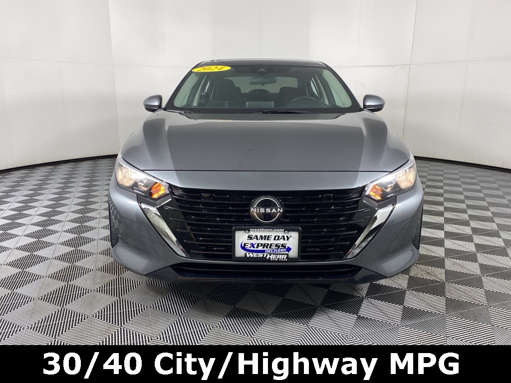 2024 Nissan Sentra SV Carfax One-Owner. Clean Carfax. 16" Alloy Wheels, ABS brakes, AM/FM radio: SiriusXM, Blind Spot Warning, Body Colored Splash Guards (4-Piece), Carpeted Floor Mats w/Trunk Mat, Clear Rear Bumper Protector, Door Sill Plates, Electronic Stability Control, Fully automatic headlights, Illuminated entry, NissanConnect featuring Apple CarPlay and Android Auto, Rear Parking Sensors, Remote keyless entry, Split folding rear seat, Steering wheel mounted audio controls, Upgraded Cloth Seat Trim. 30/40 City/Highway MPG. Coming Soon! This vehicle has recently been acquired and we are currently processing the paperwork, servicing the vehicle, and taking more photos. It will be available for sale and delivery shortly. See a store manager for specific details on the current status. Important recall information. Some vehicles may be subject to unrepaired safety recalls. Go to www.safercar.gov to learn whether an individual is subject to an open or an open or a open.