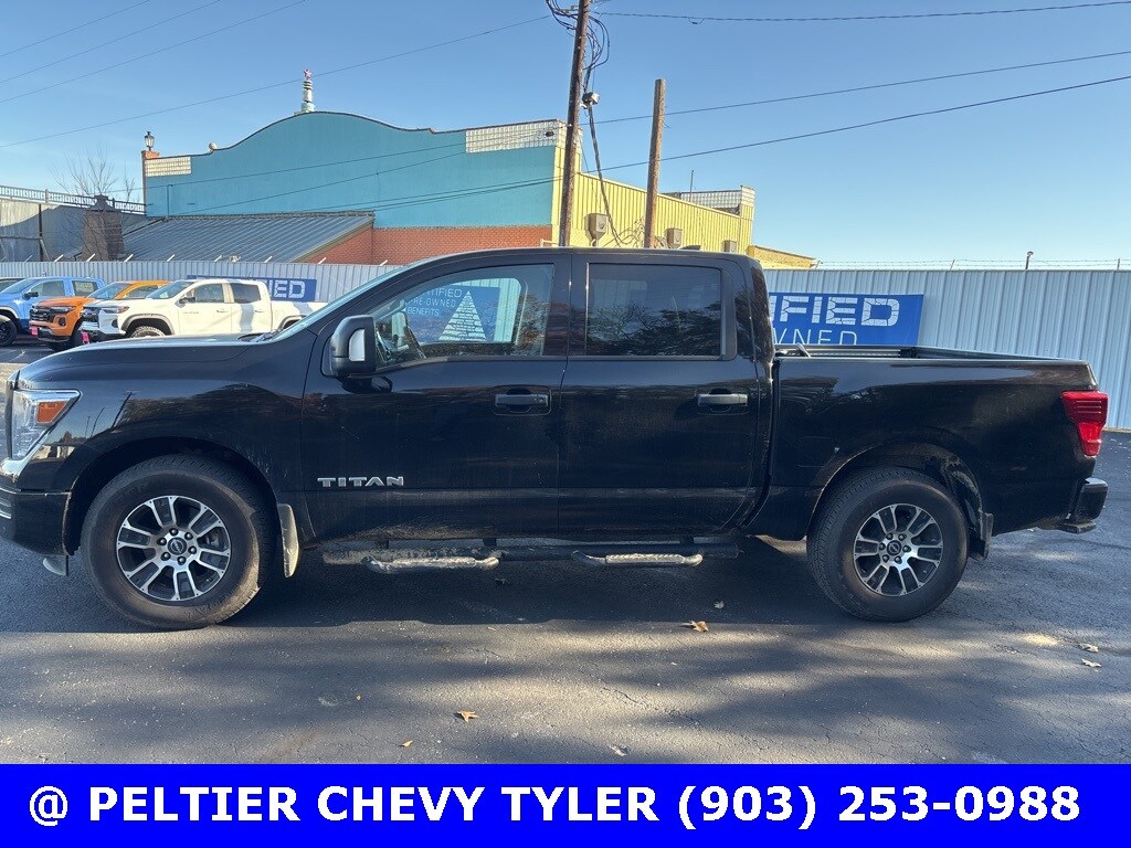 CARFAX One-Owner. Clean CARFAX. Super Black 2024 Nissan Titan SV 4WD 9-Speed Automatic 5.6L V8 DOHC 32V LEV3-ULEV70 400hp. Recent Arrival! Odometer is 523 miles below market average! Only at Peltier Chevrolet in Tyler, near Mineola, Longview, Jacksonville, and Lindale.