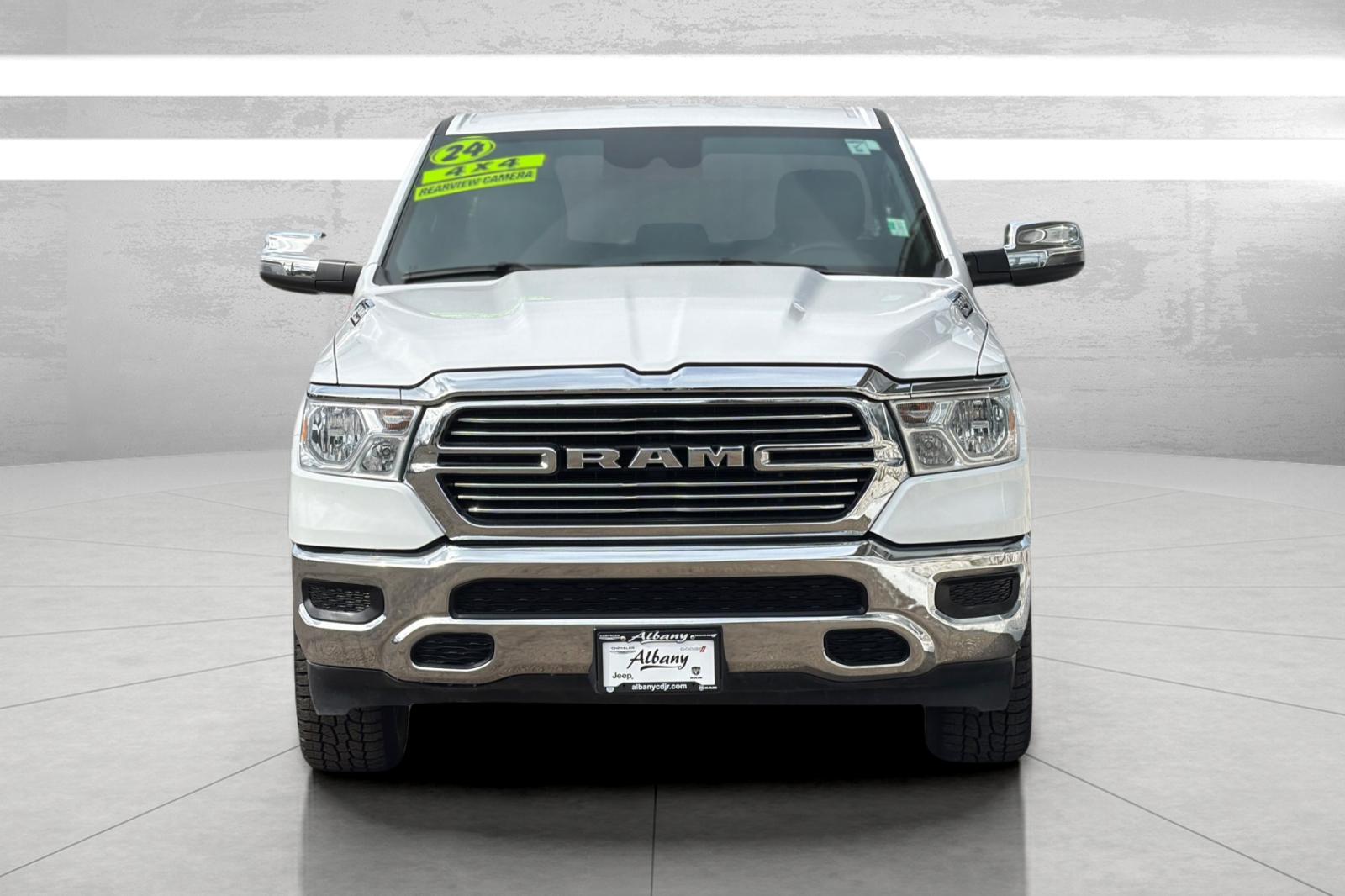 Bright White Clearcoat 2024 Ram 1500 Laramie, 4D Crew Cab, HEMI 5.7L V8 Multi Displacement VVT eTorque, 8-Speed Automatic, 4WD, Bright White Clearcoat, Black Leather. As a premier Oregon Chrysler Dodge Jeep Ram dealer, we have a huge selection of new and used vehicles from which to choose. We specialize in affordable vehicles with an excellent selection for you to choose from, including Certified Pre-owned. We provide great service, great prices and a great experience as proven by our excellent customer ratings, Google 3.2 stars, and 4.9 stars on Cargurus.com, and Yelp 4.0 stars. We are non-pushy, genuine and honest. Albany Chrysler Dodge Jeep Ram is a locally owned and operated dealership serving Albany, Corvallis, Lebanon, Tangent, Millersburg, Jefferson, Philomath, Adair Village, Shedd, Brownsville and Sweet Home Chrysler Dodge Jeep Ram buyers. Our friendly staff is funny, approachable, and very knowledgeable.