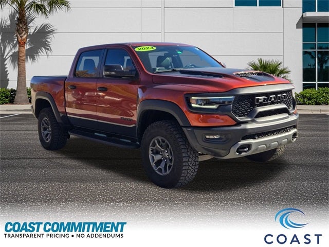 Recent Arrival! Harvest Sunrise 2024 Ram 1500 TRX. Odometer is 8230 miles below market average! BUY ONLINE-TEXT-EMAIL-CHAT-PHONE AND WE WILL DELIVER YOUR NEXT VEHICLE TO YOUR DOOR! COAST COMMITMENT - NO ADDENDUMS • TRANSPARENT PRICING. RIDE THE WAVE TO COAST. CLEAN AND SANITIZED.