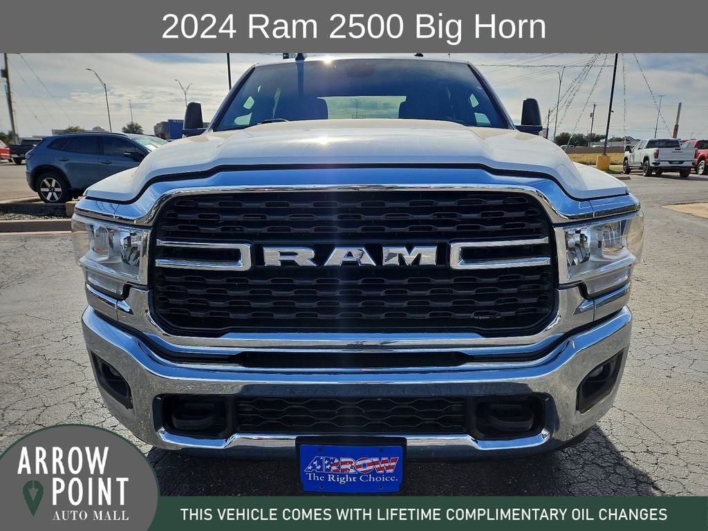 Bright White Clearcoat 2024 Ram 2500 Big Horn 4D Crew Cab. Clean CARFAX. CARFAX One-Owner. This vehicle comes with the following features and options : Level 1 Equipment Group. Our commitment to excellence remains long after you get the bill of sale. Each vehicle, including the used 2024 RAM 2500 Big Horn, is supported by our comprehensive service center. Our expert technicians use genuine parts to keep your car in top condition. Whether routine maintenance or more extensive repairs, our quick and efficient service swiftly gets you back on the road. We understand that financing can be a significant concern, and that's why Arrow Ford offers generous and flexible financing solutions. Our finance team works with a variety of lenders to provide you with the best rates, and we strive to find the perfect deal that fits your budget. Ready to experience the used 2024 RAM 2500 Big Horn for yourself? Visit Arrow Ford, your trusted Ford dealer, to browse our inventory and take a test drive. Learn why we are the go-to destination for new and used vehicles in Abilene, TX!