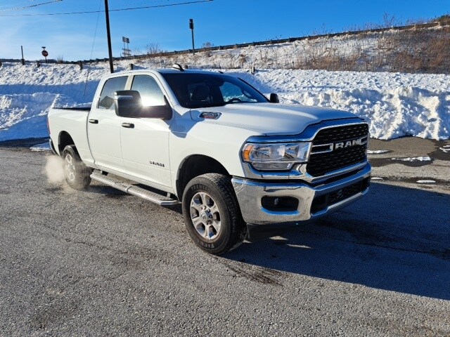Bright White Clearcoat 2024 Ram 2500 Big Horn 4WD 8-Speed Automatic 6.4L V8. Odometer is 1550 miles below market average! Matthews Chrysler Dodge Jeep Ram is located just 11 miles from Binghamton, NY over the border in Great Bend, Pennsylvania. Find us at Exit 230 off Route 81, then just a few hundred yards off route 171, behind the Kwik Fill Gas Station. Matthews Chrysler Dodge Jeep Ram is the largest dealership in Susquehanna County! We transformed 30,000 square feet of warehouse space into a Chrysler Dodge Jeep Ram dealership with a large service/parts/accessories center and a spacious showroom. It's a return to our roots, as Chrysler-Plymouth was the first brand our founder, Mr. Jim Matthews, bought in Vestal NY, in 1973. We're celebrating 50 years! Fifteen dealerships later, we are still family-owned and operated.