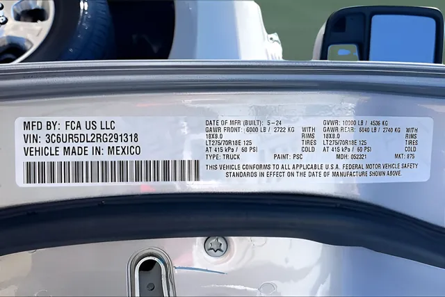 VIN: 3C6UR5DL2RG291318