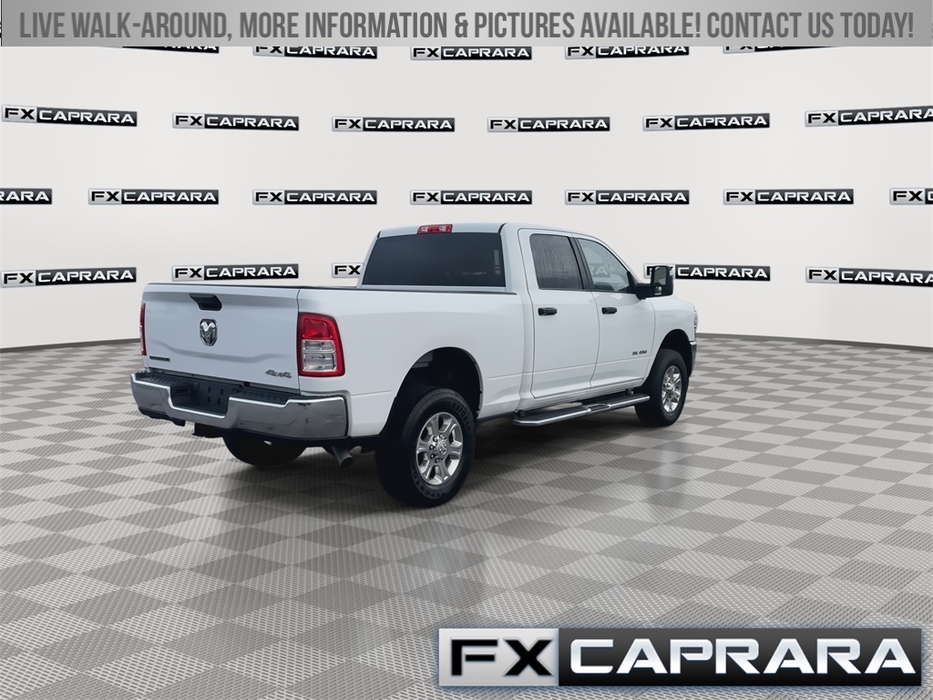 Clean CARFAX. CARFAX One-Owner. Bright White Clearcoat 2024 Ram 2500 Big Horn 4WD 4D Crew Cab 8-Speed Automatic 6.4L V8. The Caprara family first opened our dealership doors 50 years ago and has proudly been a presence in Jefferson County, St. Lawrence County and the surrounding area through the years. When you visit our family-owned and operated dealership our team aims to make you feel right at home. Visit us for yourself to become a part of the FX Caprara family!