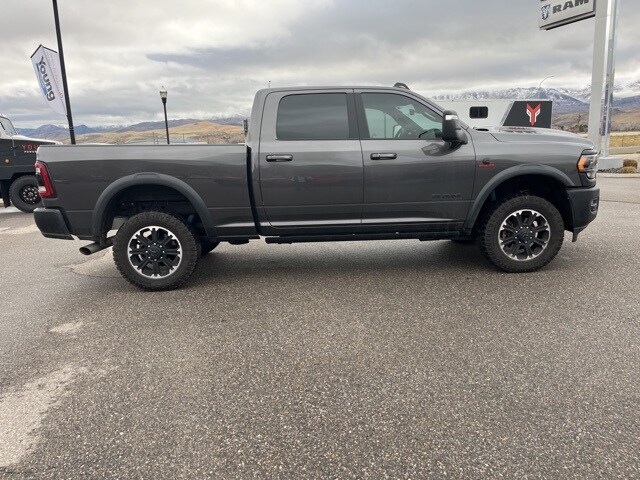 The 2024 Ram 2500 Rebel is a heavy-duty beast with a bold, purposeful stance that tells you it's ready for whatever comes next. Its powder-coated front bumper and black exterior badging give it a commanding presence on the road, while black diamond-cut 20-inch wheels wrapped in 33-inch all-terrain tires hint at the off-road terrain it's unafraid to tackle. Slide into the crew cab and you are greeted by a purposeful interior that balances rugged capability with comfort. Leather upholstery with embossed accents makes the cabin feel premium, while a heated, eight-way power driver's seat and dual-zone automatic climate control keep you comfortable on long drives. The crew cabs interior feels spacious, made for taking friends, gear, or both wherever you are headed. Everywhere you look and feel in the Rebel, there is a sense of rugged capability with everyday usability: a truck that is equally at home tackling steep dirt roads as it is cruising city streets with confidence. The 2024 Ram 2500 Rebel is a bold, off-road-ready heavy-duty pickup that blends rugged capability, everyday comfort, and purposeful design built to take you farther and do more than you might expect from a truck its size.