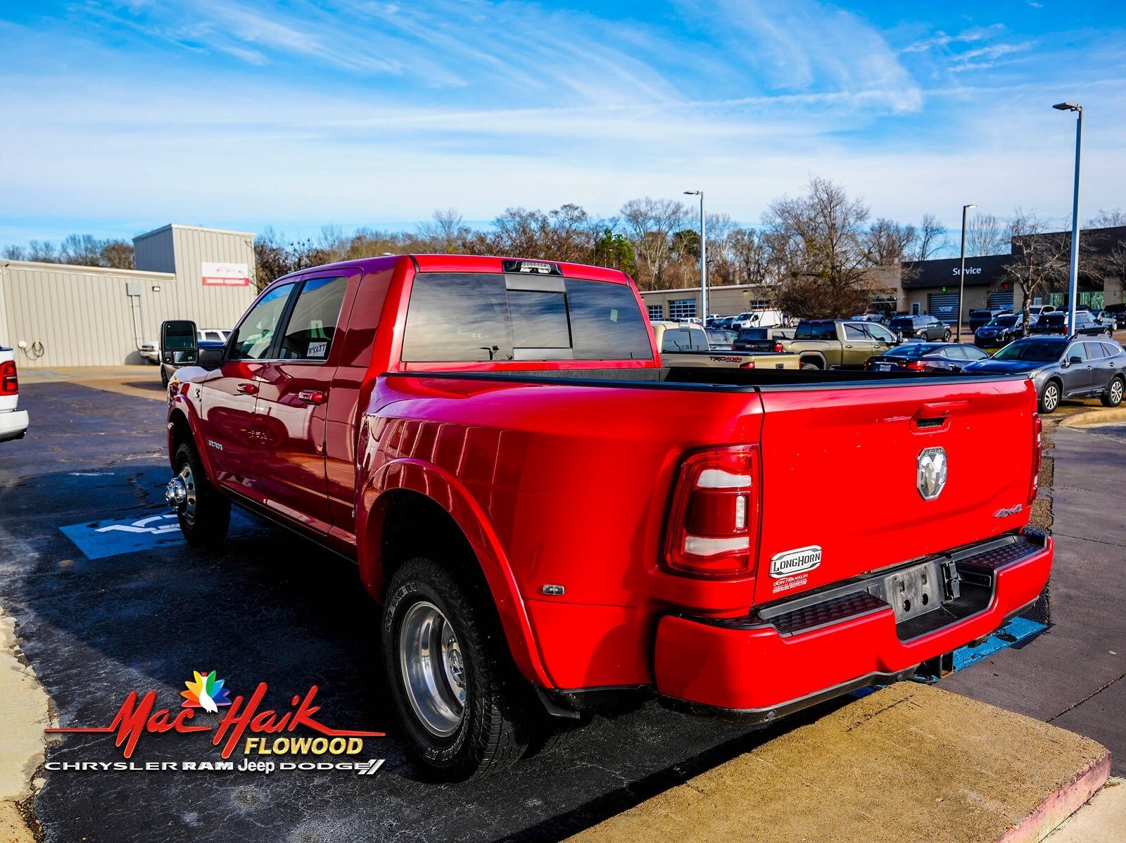 Flame Red Clearcoat 2024 Ram 3500 Laramie Longhorn Mega Cab 4WD Aisin 6-Speed Automatic 6.7L I6 Local Trade, 12" Touchscreen Display, 17 Speaker harman/kardon Premium Sound, 4G LTE Wi-Fi Hot Spot, Alexa Built-In, Apple CarPlay, Blind Spot & Cross Path Detection, Center Stop Lamp w/Cargo View Camera, Connected Travel & Traffic Services, Connectivity - US/Canada, Disassociated Touchscreen Display, For Details Visit DriveUconnect.com, For More Info, Call 800-643-2112, Global Telematics Box Module (TBM), Google Android Auto, GPS Antenna Input, GPS Navigation, HD Radio, Integrated Voice Command w/Bluetooth, LED Bed Lighting, Longhorn Level 1 Equipment Group, MOPAR Spray In Bedliner, Off-Road Information Pages, Power Deployable Running Boards, Quick Order Package 21K Longhorn, Radio: Uconnect 5 Nav w/12.0" Display, Ramcharger Wireless Charging Pad, Selectable Tire Fill Alert, SiriusXM Radio Service, SiriusXM w/360L, Surround View Camera System, Towing Technology Group, Trailer Reverse Guidance, Trailer Tow Pages. Looking for the perfect ride in Flowood, Brandon, Jackson, Ridgeland, Madison, Florence, Pelahatchie, Puckett, Philadelphia, Rankin County, Hinds County, Madison County, Nashoba County; Mac Haik Flowood Chrysler Dodge Jeep Ram in Flowood, MS has you covered! It doesn’t matter if you’re looking for a Ford, Chevy, GMC, Nissan, Toyota, Honda, Subaru, if you can think of it, we can find it! With over 17 different locations across the country we have a large selection of Ford F150, Chevy Silverado, GMC Sierra, Toyota Camry, Toyota Corolla, and Honda Accords! Stop by and check out our beautiful brand new facility, we are committed to serving you at the highest level! Recent Arrival!