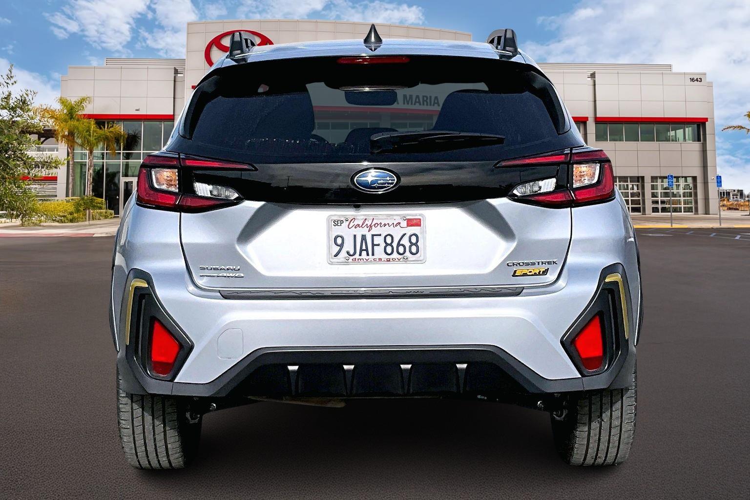 Why Buy from Toyota Santa Maria? When you choose this 2024 Toyota, you're not just buying a used car - you're investing in quality, reliability and peace of mind. When you choose this 2024 Subaru Crosstrek from Toyota Santa Maria, you're not just buying a used car - you're investing in quality, reliability and peace of mind. Located in Santa Maria, CA, we're proud to offer the best selection of certified pre-owned Subaru vehicles and top-tier used cars in our local area. One Owner! Crosstrek Mirror Package ($695 value) Auto-Dimming Mirror with Compass and HomeLink Auto-Dimming Exterior Mirror with Approach Light Blind Spot Detection with Rear Cross Traffic Alert and Power Driver Seat and Power Moonroof ($1,920 value) 10-Way Power Driver's Seat Blind Spot Detection with Rear Cross-Traffic Alert Power Moonroof BSD/RCTA & POWER DRIVER SEAT & POWER MOONROOF, ICE SILVER METALLIC, GRAY W/YELLOW STITCHING, SPORT CLOTH UPHOLSTERY, CROSSTREK MIRROR PACKAGE, LED UPGRADE Safety and Security Forward collision mitigation - Forward thinking. You look away for just a second and suddenly the vehicle in front of you has stopped. That's when the forward collision mitigation system comes to life. When it senses an impending impact, it will activate a combination of features to help prevent or reduce the severity of an accident. Forward collision mitigation is always looking ahead. Pedestrian impact prevention - An extra step toward safety. Pedestrians don't always stop, look, and listen, but with Pedestrian Impact Prevention, your vehicle is equipped to better see them and avoid them. This system constantly monitors the road ahead to identify and track pedestrians. It projects that image to an interior display screen, AND should an impact become likely, Pedestrian impact prevention takes steps to avoid a collision. Hands-on cruise control. Set it and forget it. Road trips used to be stressful. Cruise control only managed speed, but not distance or safety. Now, with hands-on cruise control, simply set your desired speed and let sensor technology maintain a safe distance between you and surrounding vehicles. It slows you down; speeds you up and even keeps you in your own lane. Meet your ultimate co-pilot with hands-on cruise control. STARLINK/Apple CarPlay/Android Auto smart device wireless mirroring Ready to drive home this 2024 Subaru Crosstrek Sport today at Toyota Santa Maria? Call us at to schedule your visit. Don't miss out - at this price $25,995 it won't last long! We strive to ensure that all vehicles are properly priced, but occasionally errors may occur. Please call to confirm vehicle price and availability.