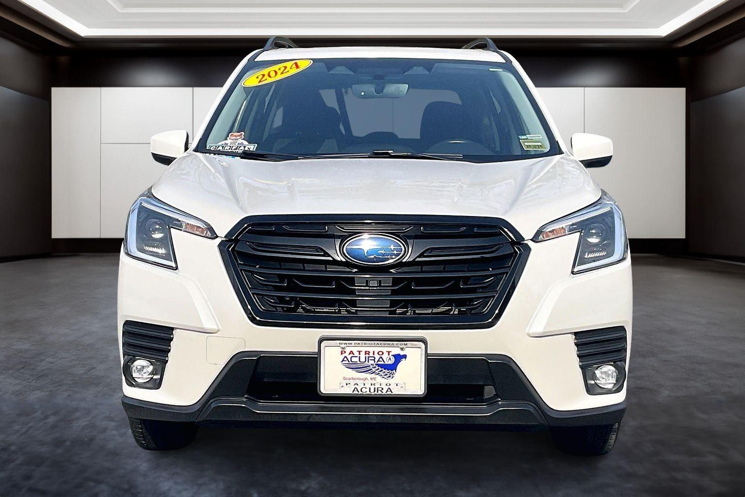 No matter what your automotive needs may be, you'll find answers here at Patriot Acura. This 2024 Subaru Forester Premium has a beautiful Crystal White Pearl exterior with Black interior. This vehicle has 38,007 miles has been thoroughly inspected by our factory trained service technicians and has been fully reconditioned for immediate delivery. We're happy to provide this Forester's CARFAX vehicle history report upon request as well. For a quick, stress-free car buying experience you've come to the right place. At Patriot Acura we make the same pledge to all of our customers. We are proud of the products and services we sell, so there is no need for us to pressure you into buying. Those who pressure do so for a reason. As much as price, customers have always valued Patriot's commitment to matters of social and community importance. Our reputations as an eco-responsible dealer, as well as leadership in caring for others is at the core of all we do. Our customers seek adventure, so when you need assistance, you can rely on Patriot to be there to help. Our dealership is located just off of Exit 42 in Scarborough. Our address is 101 Haigis Pkwy Scarborough ME 04074.