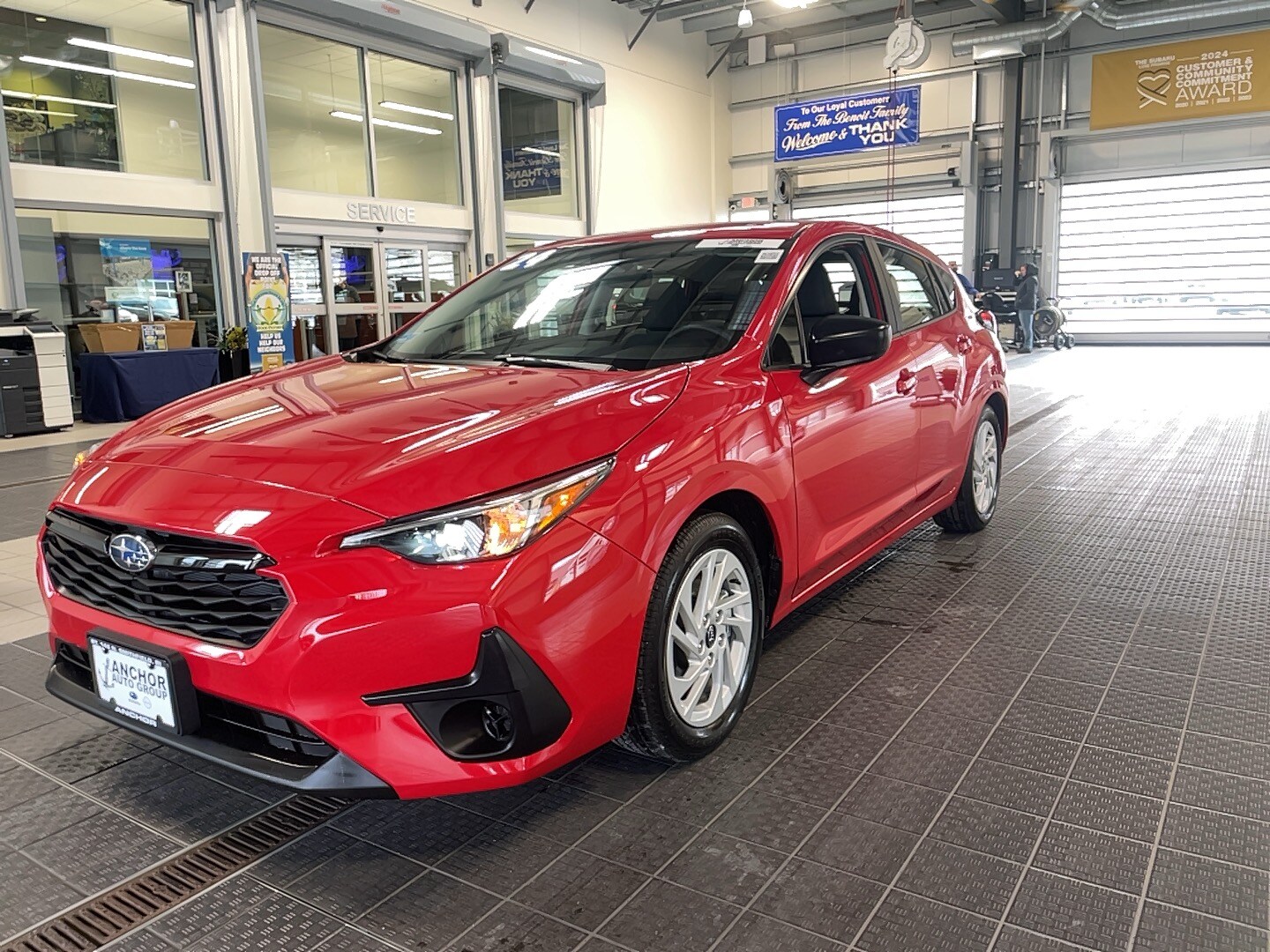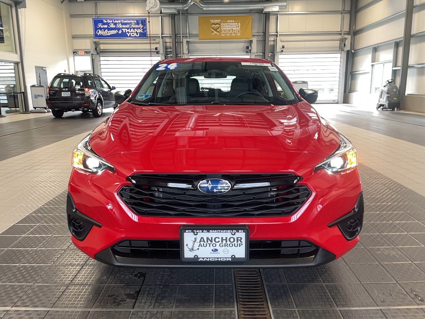 This 2024 Subaru Impreza 2.0I AWD is a used vehicle with 812 miles. It features EyeSight Pre-Collision and Adaptive Speed Control, Apple/Android CarPlay, and a rear view camera. The car has a pure red exterior and a black interior. It is equipped with an automatic temperature control, Bluetooth, and alloy wheels. The vehicle is under the balance of a factory warranty and comes with a vehicle buyback guarantee.