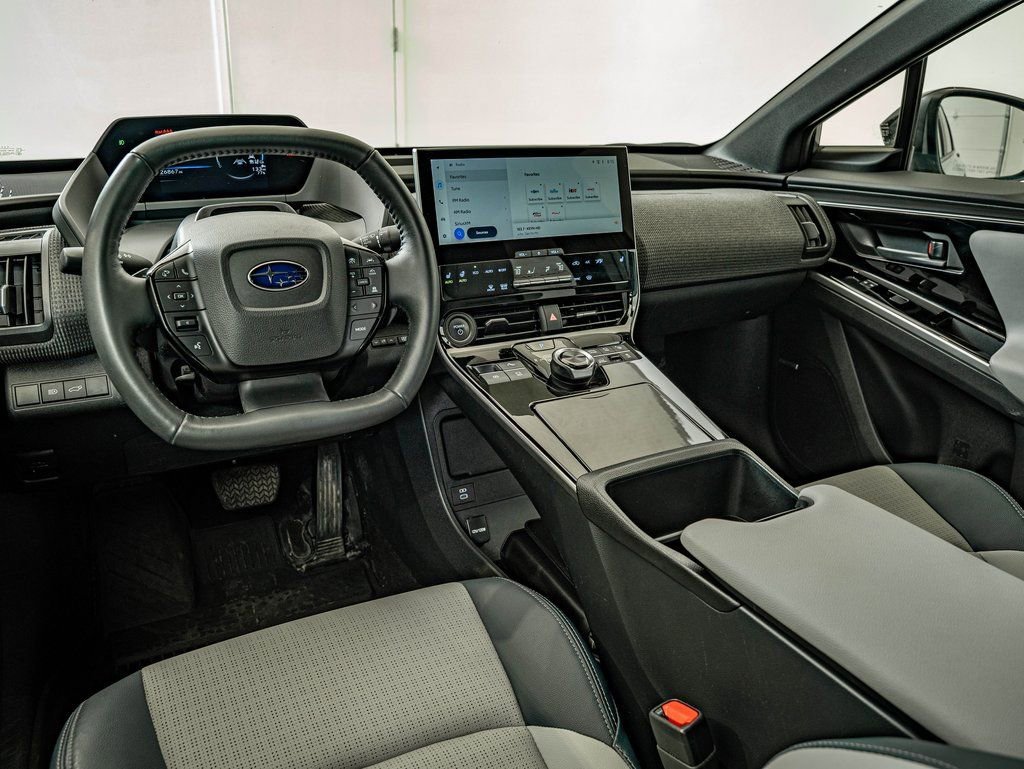 2024 Subaru Solterra Limited, located at Acura of Wichita. Original MSRP: $51,858. Harbor Mist Gray Pearl exterior with Gray and Blue interior. This Solterra comes equipped with Blind Spot Assist, Rear Cross-Traffic Warning, Park Assist, Brake Assist, Front Collision Mitigation, Adaptive Cruise Control, Lane Keep Assist, Lane Departure Warning, Navigation and Surround View Camera, Apple CarPlay and Android Auto, Heated front seats, Heated steering wheel, Panoramic Sunroof, and SiriusXM (subscription required). For more information, please visit the AutoiPacket link above.