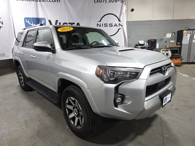 At Vista Nissan, our philosophy of doing business that finds a way to satisfy each and every customer. If it means pricing our vehicles based on market analysis and third party tools...done. Even if it means bringing back a car you don't absolutely love... we'll take it, no questions asked. We believe the whole experience should be completely transparent, positive and yes, even fun. 2024 Toyota 4Runner TRD Off-Road 4WD 4.0L V6 DOHC 24V 5-Speed with ECT. Service records available, one owner, clean Carfax / no accidents, backup camera, 4x4, 4Runner TRD Off-Road, 4D Sport Utility, 4.0L V6 DOHC 24V, 5-Speed with ECT, 4WD, Cloth.