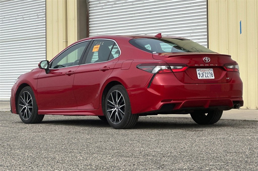 28/39 City/Highway MPG. Previous daily rental. Camry SE, 4D Sedan, 2.5L I4 DOHC 16V, 8-Speed Automatic, FWD, Red, Black. Due to high crime rates in California, our vehicles come with Express Code Anti-Theft Vehicle Etching for only $395. This deters theft and increases recovery by permanently marking vehicle body parts. It could pay you $2,500 in the event your vehicle is stolen too. Because we care about the condition of our vehicles and others, we even install our Clear Shield Package: 3M door edge guards and handle cups for $495 to protect your paint against common paint chips at the edge of your doors, protect other cars in the event you accidentally open your door into theirs, and it also protects against common scratches under your door handles! Clean CARFAX. CARFAX One-Owner.