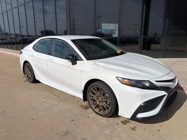 RECALL NOTICE: Some vehicles offered for sale may be subject to unrepaired manufacturer safety recalls. To determine the recall status of a vehicle, visit https://www.nhtsa.gov/recalls. CARFAX One-Owner. Clean CARFAX. Ice Cap 2024 Toyota Camry SE Nightshade FWD 8-Speed Automatic 2.5L I4 DOHC 16V BLUETOOTH, REAR BACK UP CAMERA, APPLE CAR PLAY, Black w/Sport SofTex Seat Trim w/Fabric Inserts, 6 Speakers, Alloy wheels, Apple CarPlay/Android Auto, Exterior Parking Camera Rear, Front dual zone A/C, Fully automatic headlights, Heated door mirrors, Knee airbag, Leather steering wheel, Low tire pressure warning, Nightshade Edition, Outside temperature display, Power door mirrors, Power driver seat, Power steering, Power windows, Remote keyless entry, Speed-sensing steering, Steering wheel mounted audio controls, Telescoping steering wheel, Tilt steering wheel. Recent Arrival! Odometer is 35241 miles below market average! 28/39 City/Highway MPG