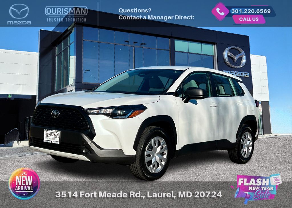 2024 Toyota Corolla Cross L Pearl AWD Carfax One-Owner. Bluetooth/Hands Free, Rear view camera/Backup camera, Lane keep assist/Lane mitigation/Active lane assist, Apple CarPlay/Android Auto, Pre-collision system/Break system, Active cruise control/Adaptive cruise control, No accidents or damage reported to Carfax, AWD, all wheel drive, 1 owner Carfax. Buyers should take pride in knowing that Maryland has one of the most comprehensive state inspections in the country. Awards: ALG Residual Value Awards, Residual Value Awards. We know you have done a great deal of research, and you don't have time for hours of back-and-forth negotiations. At Ourisman Laurel Campus, your hassle-free purchase is backed by our extensive Market Research. Our No-Haggle pricing ensures you the best value on your vehicle-no games, no gimmicks. Unlike our competitors, we don't add any additional fees to the posted price or certification. You pay only the posted price of the vehicle plus Sales tax, your registration and a MD processing charge of $800Not required by law. Come see why Ourisman Mazda, Mitsubishi, Hyundai, Nissan in Laurel (Ourisman Laurel Campus) offers you the best value for your money! Serving Frederick, Rockville, Hagerstown, Potomac, Baltimore, Silver Spring, DC, Howard County, Washington County, Montgomery County, Anne Arundel. Maryland State Inspected with over 120 point inspection performed by a trained technician. Buyers should take pride in knowing that Maryland has one of the most comprehensive state inspections in the country.