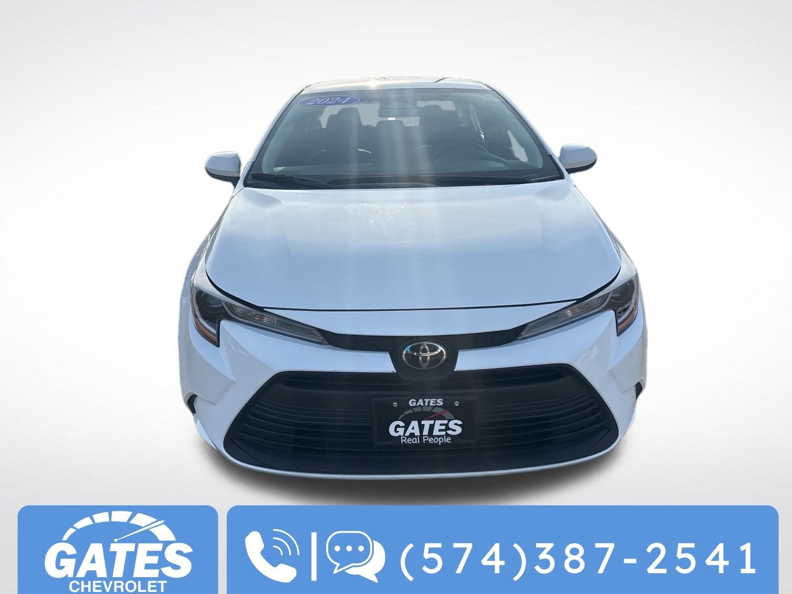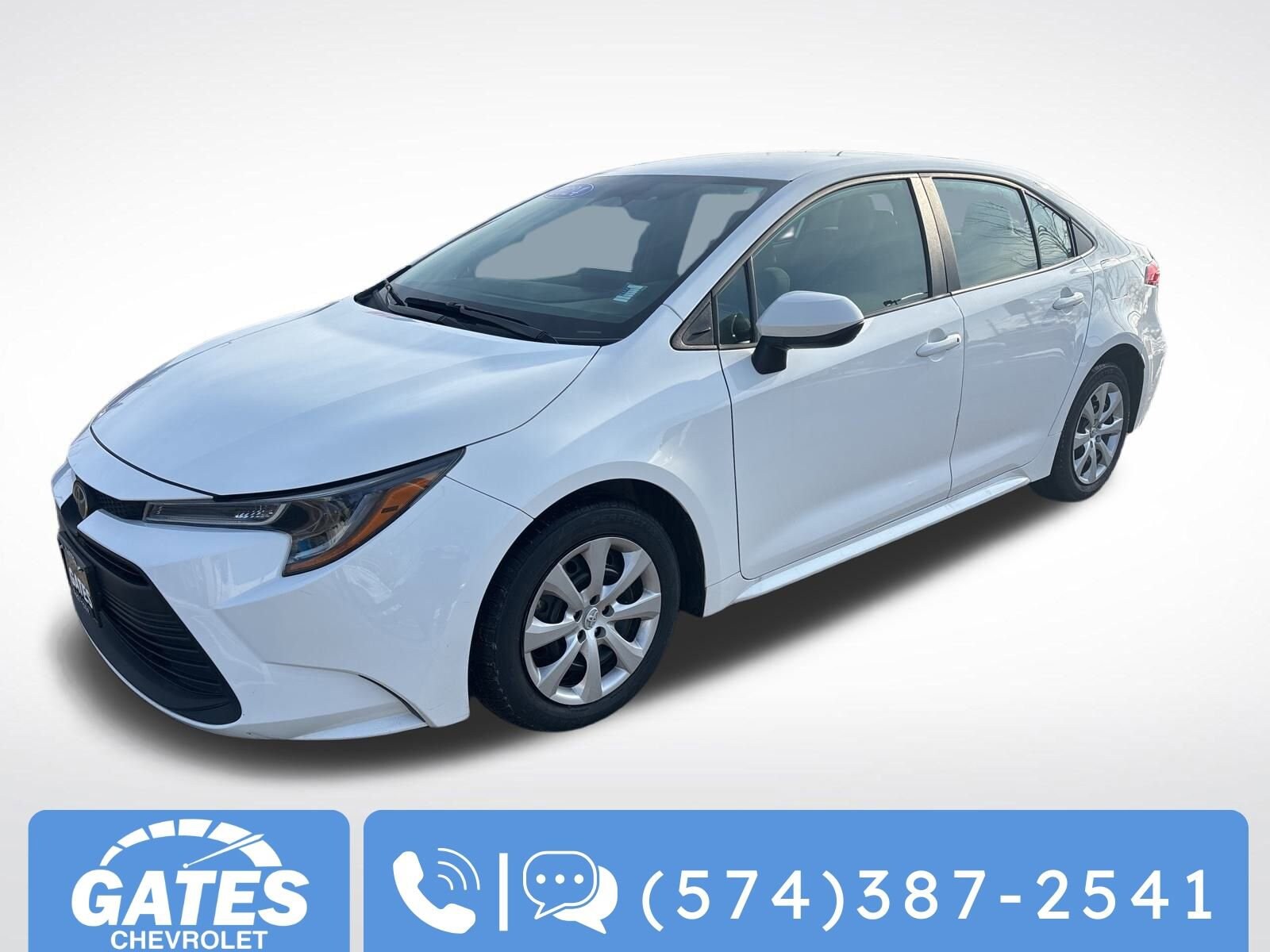 White 2024 Toyota Corolla LE FWD CVT 2.0L I4 DOHC 16V Customer for life warranty-ask about it! Gates has your back! This vehicle is located at Gates Chevrolet in South Bend 311 E Ireland rd. South Bend, IN 46614. Call/text 574-387-2541 for more info. Recent Arrival! Odometer is 7024 miles below market average! 32/41 City/Highway MPG