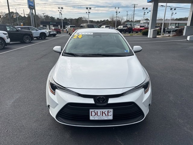 The 2024 Toyota Corolla LE represents a benchmark in modern compact sedan design, offering exceptional efficiency, trusted reliability, and a refined driving experience that continues to make the Corolla one of the most sought-after vehicles in its class. Available now at Duke Chevrolet GMC in Suffolk, Virginia, this Carfax One-Owner Corolla LE stands out with an odometer reading 18,693 miles below market average, a clear indication of limited use and careful ownership. Finished in a clean and timeless white exterior paired with a comfortable black interior, this four-door sedan presents a sleek and contemporary appearance that fits effortlessly into any lifestyle. The Corolla LE is designed for drivers who value long-term dependability, low operating costs, and an easygoing driving character that performs just as well in daily commuting as it does on longer highway trips. Under the hood, the efficient 2.0-liter four-cylinder engine works seamlessly with a smooth continuously variable transmission, delivering responsive acceleration while maintaining impressive fuel economy. Front-wheel drive ensures predictable handling and confidence in a wide range of driving conditions. Every purchase at Duke Chevrolet GMC includes the dealership's exclusive Lifetime U Benefits, which feature Lifetime Oil Changes, a 12-Month or 12,000-Mile Powertrain Warranty, Lifetime Virginia State Inspections, a 4-Day or 200-Mile Exchange Policy, and a Lifetime Service and Parts Guarantee, underscoring Duke's commitment to long-term customer satisfaction and exceptional value.
