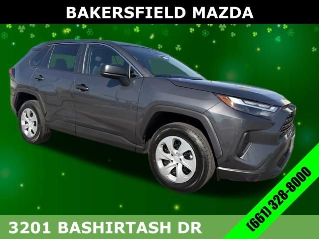 Gray 2024 Toyota RAV4 LE AWD 8-Speed Automatic 2.5L 4-Cylinder DOHC Dual VVT-i Clean Carfax, One Owner, Apple Carplay, Android Auto, Backup Camera, Bluetooth, AWD, Black Cloth, Air Conditioning, Auto High-beam Headlights, Dual front impact airbags, Emergency communication system: Safety Connect (10-year trial), Exterior Parking Camera Rear, Four wheel independent suspension, Low tire pressure warning, Power steering, Radio: AM/FM/XM Audio System, Remote keyless entry, Steering wheel mounted audio controls, 17" Steel Wheels, 4-Wheel Disc Brakes, 6 Speakers, ABS brakes, AM/FM radio: SiriusXM, Axle Ratio: 3.177, Brake assist, Bumpers: body-color, Driver door bin, Driver vanity mirror, Dual front side impact airbags, Electronic Stability Control, Fabric Seat Trim, Front anti-roll bar, Front Bucket Seats, Front Center Armrest, Front reading lights, Illuminated entry, Knee airbag, Occupant sensing airbag, Outside temperature display, Overhead airbag, Overhead console, Panic alarm, Passenger door bin, Passenger vanity mirror, Power door mirrors, Power windows, Radio data system, Rear anti-roll bar, Rear seat center armrest, Rear window defroster, Rear window wiper, Speed control, Speed-sensing steering, Split folding rear seat, Spoiler, Tachometer, Telescoping steering wheel, Tilt steering wheel, Traction control, Trip computer. 27/34 City/Highway MPG For more information view our website at www.bakersfieldmazda.com or contact us at 661-328-8000 to schedule your test drive today!