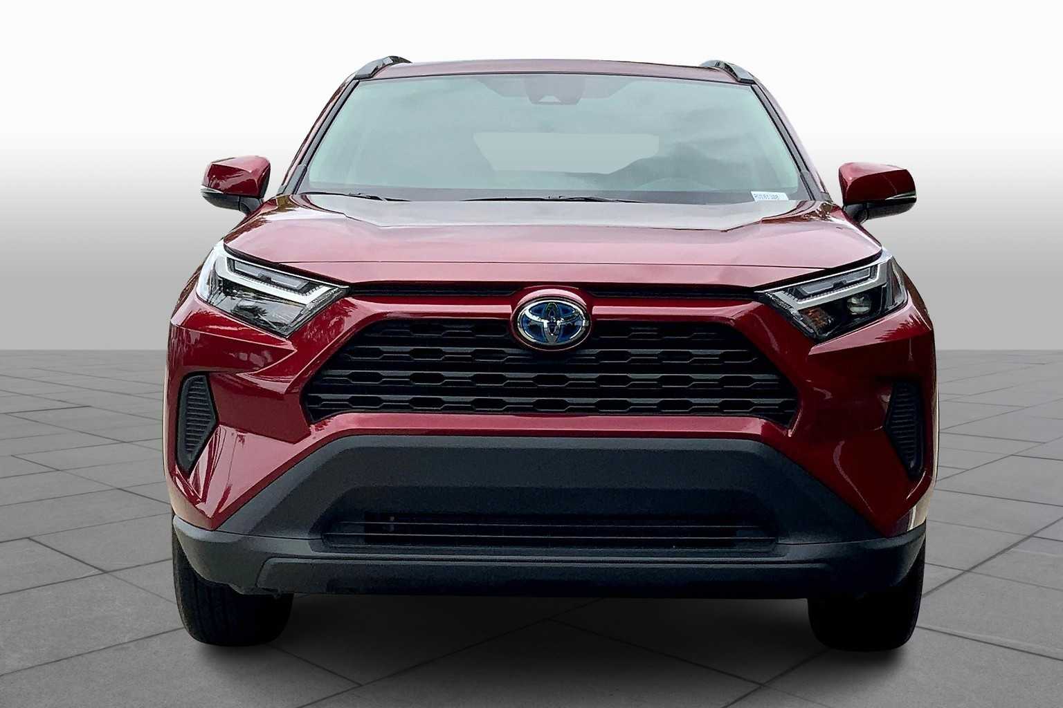 Recent arrival of a 2024 Toyota RAV4 Hybrid XLE with Ruby Flare Pearl exterior and Black interior. Features include Lane Departure Alert, Automatic Temperature Control, and a Back-Up Camera. Priced $2,400 below J.D. Power Retail.