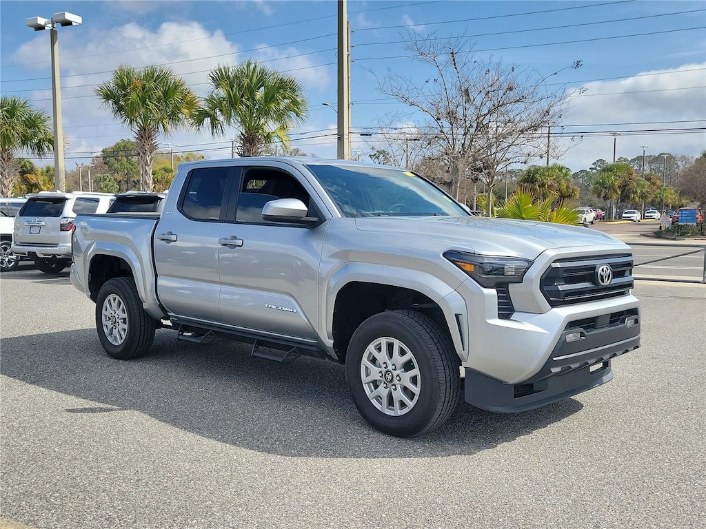 Thank you for choosing Butler Toyota of Jacksonville, this Celestial Silver Metallic 2024 Toyota Tacoma SR5 is a great choice! Check out the following: No Accidents! One Owner! City 19/ Hwy 24. Predator Tube Steps ($700 value) Bed Deck Rail and Cleats ($70 value). Forward collision mitigation - Forward thinking. You look away for just a second and suddenly the vehicle in front of you has stopped. That's when the forward collision mitigation system comes to life. When it senses an impending impact, it will activate a combination of features to help prevent or reduce the severity of an accident. Forward collision mitigation is always looking ahead. Pedestrian impact prevention - An extra step toward safety. Pedestrians don't always stop, look, and listen, but with Pedestrian Impact Prevention, your vehicle is equipped to better see them and avoid them. This system constantly monitors the road ahead to identify and track pedestrians. It projects that image to an interior display screen, and should an impact become likely, Pedestrian impact prevention takes steps to avoid a collision. Hands-on cruise control. Set it and forget it. Road trips used to be stressful. Cruise control only managed speed, but not distance or safety. Now, with hands-on cruise control, simply set your desired speed and let sensor technology maintain a safe distance between you and surrounding vehicles. It slows you down; speeds you up and even keeps you in your own lane. Meet your ultimate co-pilot with hands-on cruise control.