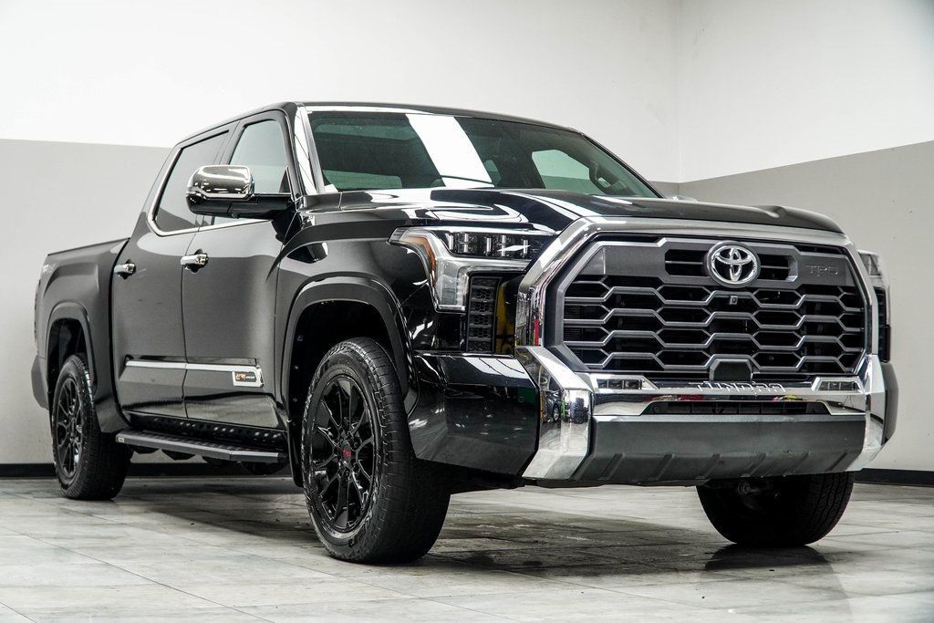 Midnight Black Metallic 2024 Toyota Tundra 1794 TRD Off Road Package 4WD 10-Speed Automatic 3.4L V6. Recent Arrival! Odometer is 3588 miles below market average! We do our best to list all the correct information, however we will not be bound by or responsible for any error or misprint in our advertisement. It is the customer's sole responsibility to verify the accuracy of the prices and mileage with the dealer as well as the existence and condition of any equipment listed. Pricing subject to change without notice. Ad must be printed and presented to the dealer to qualify for discounted price. The vehicle is Pre-Owned, is not new, dents, scratches, wear, tear, previous repairs, paintwork, bodywork, defects, hidden damages, rust and imperfections exists and should be expected. We may or may not have all the keys, owner's manuals, and floor mats, but we will be happy to obtain extra ones for you at our cost. *All vehicle prices exclude government fees and taxes.