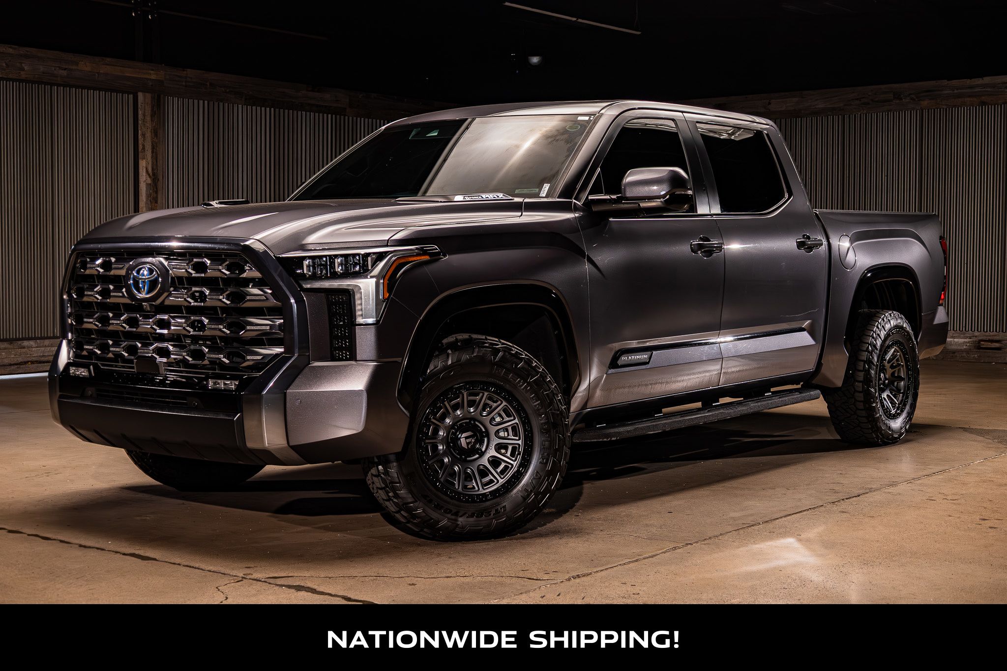 Our One Owner, No Accidents Reported 2024 Toyota Tundra Platinum CrewMax 4X4 is rugged, refined, and ready for action in Magnetic Gray Metallic! Powered by a Twin-TurboCharged 3.4 Liter i-FORCE MAX V6 and an Electric Motor delivering a combined 437hp to a 10 Speed Automatic transmission engineered for hard work. This Four Wheel Drive truck inspires confidence with its responsive suspension, and it sees nearly 23mpg on the highway. Designed to dominate, our Tundra turns heads with a panoramic sunroof, premium LED lighting, fog lamps, a dark-chrome grille, gloss-black accents, multifunction mirrors, a spray-on bed liner, a 120V/400W outlet, running boards, Custom Fuel wheels, and a stamped tailgate with a bump-switch release. Lavish luxury awaits in our Platinum cabin with heated/ventilated leather front and rear seats, a heated leather power steering wheel, dual-zone automatic climate control, a power rear window, keyless access/ignition, and a soft-touch instrument panel. A 12.3-inch driver display and 14-inch touchscreen set the stage for digital driving with WiFi compatibility, wireless Apple CarPlay/Android Auto, Bluetooth, wireless charging, and a JBL sound system. Toyota's terrific safety technologies include blind-spot monitoring, front/rear auto braking, adaptive cruise control, lane-keeping assistance, a panoramic view monitor, a digital rearview mirror, and more. Intense and intelligent, our Tundra Platinum helps drivers work hard and play harder! Save this Page and Call for Availability. We Know You Will Enjoy Your Test Drive Towards Ownership! Lifted Trucks has built an unmatched reputation over the last two decades for customizing and selling thousands of the highest quality used vehicles in the country. Our inventory is nationally sourced by our certified buyers who cherry pick only the best of the best of what is available. These vehicles then go through an 82 point inspection process to guarantee quality and safety. Our lift kits are installed by our own factory-trained technicians, who have thousands of hours of experience. The installation is then inspected by a second dedicated quality control technician, before being sent to our state of the art Hunter Engineering laser alignment rack. Our aftermarket research and development team always matches the best fitting lift kit, shocks, and wheel & tire combinations to each individual vehicle for optimal off-road performance, while maintaining an incredibly smooth ride on the street. We never cut any corners on our builds, which is why we only use top quality name brand products when building your Truck, SUV or Jeep. Lifted Trucks has thousands of 5-star reviews, and one of the highest rates of repeat customers in the auto industry. Stop by today, and experience the difference.
