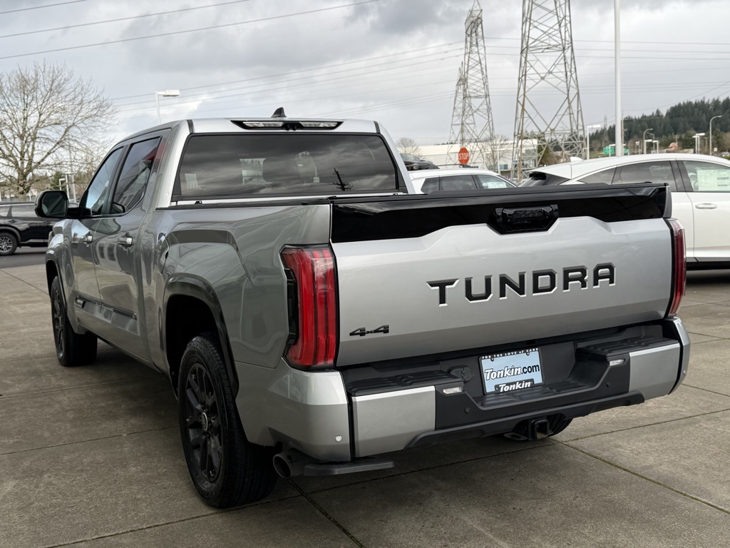 2024 Toyota Tundra Platinum Celestial Silver Metallic 3.4L V6 17/22 City/Highway MPG 4WD, Black Leather, 10-Way Pwr Adj Heated and Ventilated Front Seats, 12 Speakers, 3.31 Axle Ratio, 4-Wheel Disc Brakes, ABS brakes, Air Conditioning, Alloy wheels, AM/FM radio: SiriusXM, Apple CarPlay/Android Auto, Auto High-beam Headlights, Auto-dimming door mirrors, Auto-dimming Rear-View mirror, Automatic temperature control, Brake assist, Bumpers: body-color, Delay-off headlights, Driver door bin, Driver vanity mirror, Dual front impact airbags, Dual front side impact airbags, Electronic Stability Control, Emergency communication system: Safety Connect (10-year trial), Exterior Parking Camera Rear, Front anti-roll bar, Front Bucket Seats, Front Center Armrest, Front dual zone A/C, Front fog lights, Front reading lights, Front wheel independent suspension, Fully automatic headlights, Garage door transmitter: HomeLink, Heated door mirrors, Heated front seats, Heated rear seats, Heated steering wheel, Illuminated entry, Knee airbag, Leather Seat Trim, Leather Shift Knob, Low tire pressure warning, Memory seat, Navigation System, Occupant sensing airbag, Outside temperature display, Overhead airbag, Overhead console, Panic alarm, Passenger door bin, Passenger vanity mirror, Power door mirrors, Power driver seat, Power moonroof, Power passenger seat, Power steering, Power windows, Radio data system, Radio: Audio Multimedia System, Rain sensing wipers, Rear reading lights, Rear seat center armrest, Rear step bumper, Rear window defroster, Remote keyless entry, Safety Connect, Security system, Speed control, Speed-sensing steering, Split folding rear seat, Steering wheel memory, Steering wheel mounted audio controls, Tachometer, Telescoping steering wheel, Tilt steering wheel, Traction control, Trip computer, Turn signal indicator mirrors, Variably intermittent wipers, Ventilated front seats, Ventilated rear seats. CARFAX One-Owner. Priced below KBB Fair Purchase Price! Odometer is 2745 miles below market average! Our Best Price Up Front, No Games or Gimmicks. Our advertised price is for a retail type purchase and may not be available for Fleet or Commercial use type purchase; please call us to confirm.