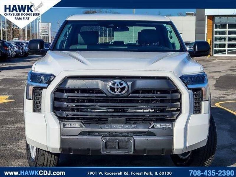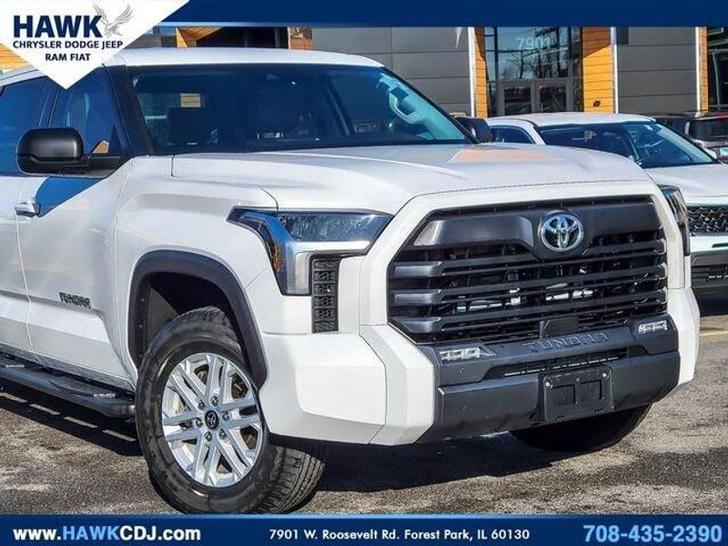 This pre-owned 2024 Toyota Tundra is a used vehicle. It comes with a 3.4L V6 engine and is equipped with a SR5 trim. The vehicle is being sold by Glenview Luxury Imports in Glenview, IL. The vehicle features a Boulder exterior with a SofTex Seat Trim, 8-Way Power-Adjustable Heated Front Seats, All Weather Floor Liners, Apple CarPlay/Android Auto, Auto High-beam Headlights, Automatic temperature control, Bed Step, Black Dual-Step Running Board, Black Tailgate Insert, Front fog lights, Fully automatic headlights, Heated door mirrors, Heated Leather Steering Wheel, Non-Skid Spray-On Bed Liner, SR5 Premium Package, Stainless Steel Door Edge Guards. The vehicle is in Hawk CDJR and is available for purchase.