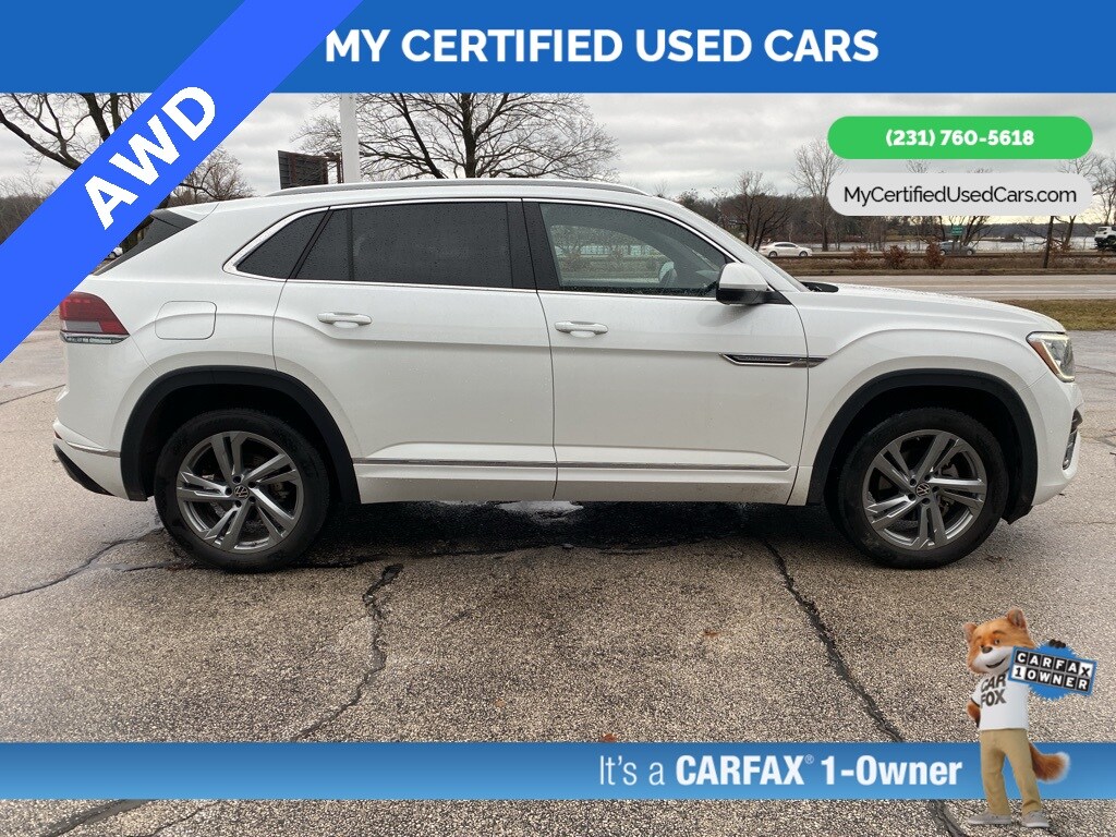 The MY Certified Used Cars team is ready to provide you with a world-class experience, ensuring that you find the perfect vehicle that fits all your needs. Every vehicle has been through a full safety inspection completed by certified technicians and fully detailed. We sell many makes and models, Pre-Owned Vehicles with years from 2023-2024-2023 and all. Take advantage of our VIP experience by calling 231-760-5618 to schedule a test drive. Read our customer reviews at www.mycertifiedusedcars.com/testimonials or view our entire selection of preowned vehicles at www.mycertifiedusedcars.com, or stop by today, located at 3692 Airline Rd. Muskegon, MI 49444. CARFAX One-Owner. Opal White 2024 Volkswagen Atlas Cross Sport 2.0T SEL R-Line AWD 8-Speed Automatic with Tiptronic 2.0L TSI Clean CARFAX.