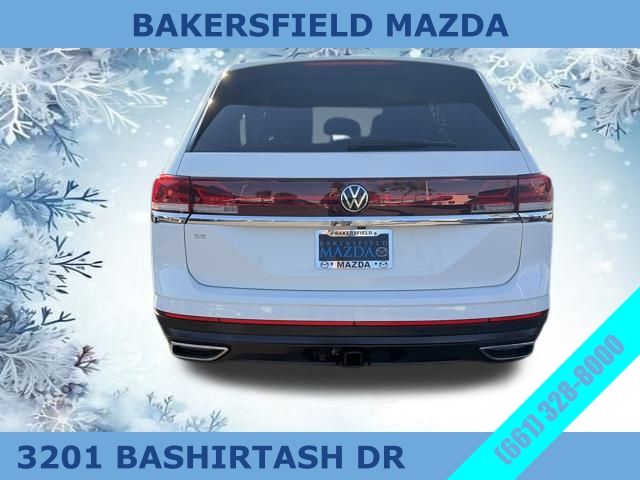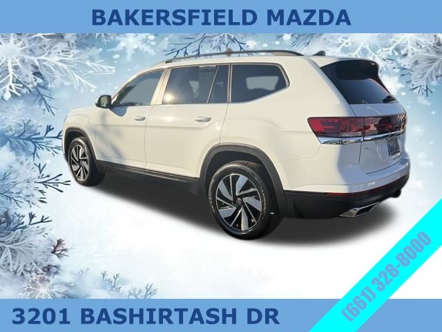 White 2024 Volkswagen Atlas 2.0T SE w/Technology FWD 8-Speed Automatic with Tiptronic 2.0L TSI Clean Carfax, One Owner, Apple Carplay, Android Auto, Backup Camera, 3rd row seats: split-bench, 6 Speakers, Air Conditioning, Brake assist, Emergency communication system: VW Car-Net Safe & Secure 5-year, Exterior Parking Camera Rear, Four wheel independent suspension, Front dual zone A/C, Fully automatic headlights, Heated door mirrors, Heated front seats, Heated steering wheel, Heated/Actively Ventilated Front Bucket Seats, Overhead airbag, Panic alarm, Power driver seat, Power Liftgate, Radio data system, Rain sensing wipers, Rear air conditioning, Remote keyless entry, Steering wheel mounted audio controls, Turn signal indicator mirrors, Ventilated front seats. For more information view our website at www.bakersfieldmazda.com or contact us at the dealership.