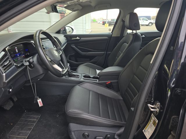 Recent Arrival! Carfax One-Owner. Deep Black Pearl 2024 Volkswagen Jetta 1.5T SE 1.5L I-4 DI DOHC Turbocharged FWD Clean Carfax. Titan Black w/V-Tex Leatherette Seat Trim. This Jetta is well equipped with Titan Black w/V-Tex Leatherette Seat Trim, 4 Speakers, 4-Wheel Disc Brakes, ABS brakes, Active Blind Spot Monitor, Air Conditioning, Alloy wheels, Auto-dimming Rear-View mirror, Automatic temperature control, Brake assist, Bumpers: body-color, Delay-off headlights, Driver door bin, Driver vanity mirror, Dual front impact airbags, Dual front side impact airbags, Electronic Stability Control, Emergency communication system: VW Car-Net Safe & Secure 5-year, Exterior Parking Camera Rear, Front anti-roll bar, Front Bucket Seats, Front Center Armrest, Front dual zone A/C, Front wheel independent suspension, Fully automatic headlights, Heated door mirrors, Heated Front Seats, Heated front seats, Illuminated entry, Leather Shift Knob, Leather steering wheel, Low tire pressure warning, Occupant sensing airbag, Outside temperature display, Overhead airbag, Overhead console, Panic alarm, Passenger door bin, Passenger vanity mirror, Power door mirrors, Power driver seat, Power steering, Power windows, Radio data system, Radio: MIB3 Composition Color w/6.5" Touchscreen, Rain sensing wipers, Rear anti-roll bar, Rear reading lights, Rear seat center armrest, Rear window defroster, Remote keyless entry, Speed control, Speed-sensing steering, Split folding rear seat, Steering wheel mounted audio controls, Tachometer, Telescoping steering wheel, Tilt steering wheel, Traction control, Trip computer, V-Tex Leatherette Seat Trim, Variably intermittent wipers, and Wheels: 17" Twin 5-Spoke Silver Painted Alloy.