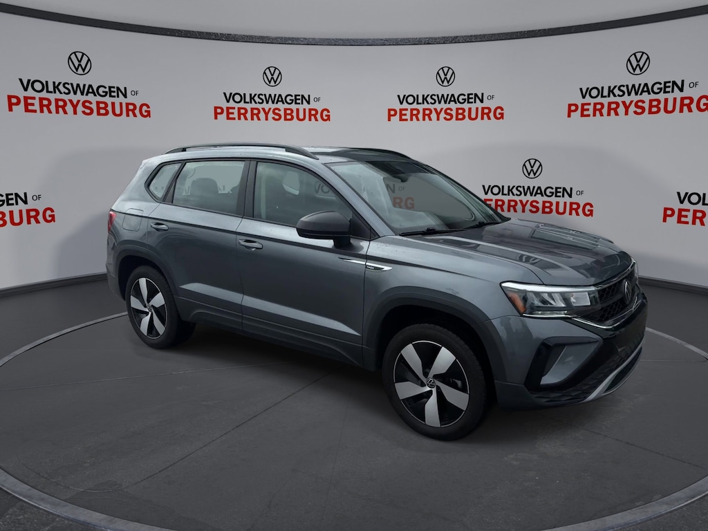 Clean CarFax, One Owner 2024 Volkswagen Taos S 4MOTION finished in Platinum Gray Metallic with Gray and Black cloth interior. Compact SUVs like the Taos continue to attract strong demand thanks to their excellent fuel efficiency, modern technology, and everyday practicality. Powered by a 1.5L turbocharged TSI engine paired with a 7 speed DSG automatic transmission and Volkswagen 4MOTION all wheel drive, the Taos delivers responsive performance along with confident traction in changing road conditions. The Taos offers a comfortable and versatile interior designed for daily driving, commuting, and weekend travel. Inside you will find heated front seats, a heated steering wheel, Volkswagen Digital Cockpit display, push button start, USB C charging ports, and smartphone integration through the touchscreen infotainment system. Volkswagen IQ.DRIVE driver assistance technology provides an impressive suite of safety features including Adaptive Cruise Control with Stop and Go, Lane Assist, Front Assist with Autonomous Emergency Braking and Pedestrian Monitoring, Blind Spot Monitoring, Rear Traffic Alert, and Travel Assist semi automated driving capability, helping provide additional confidence behind the wheel. Compact SUVs like the Volkswagen Taos AWD continue to be popular with drivers looking for strong fuel efficiency, modern safety technology, and all wheel drive capability in a comfortable everyday SUV. For buyers searching for a clean one owner compact SUV with excellent reliability and efficiency priced under 25k, the Taos offers outstanding value. At Perrysburg Automall, we believe your vehicle should deliver confidence both on the road and in the buying experience. Our transparent, no pressure process and wide network of lenders allow us to tailor financing options that fit your needs. Were proud to serve Northwest Ohio with one simple promise: Our family taking care of your family. If you have been searching for a clean one owner Volkswagen Taos 4MOTION with modern technology, great reliability, and strong fuel efficiency priced under 25k, this one is ready. Schedule your test drive today.