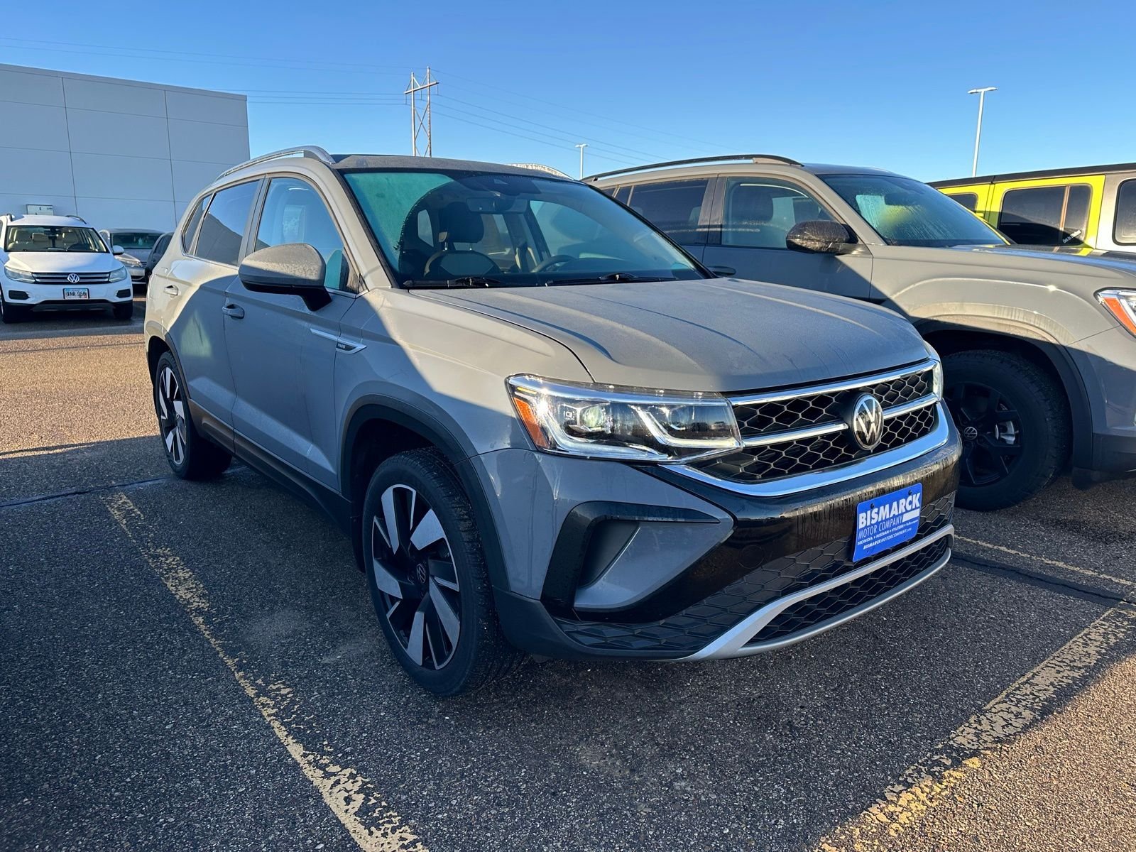 At Bismarck Motor Company, we believe car buying should be transparent and pressure-free. Every vehicle we sell is thoroughly inspected, competitively priced, and comes with our commitment to honest service. No games, no gimmicks—just quality vehicles and people who care about getting you on the road with confidence. Introducing the 2023 Volkswagen Taos is a compact SUV that delivers exceptional performance, advanced technology, and refined style. This vehicle is equipped with a robust 1.5L turbocharged engine, paired with a smooth-shifting 7-speed DSG automatic transmission and all-wheel drive, providing a thrilling and efficient driving experience. The Taos 1.5T SEL offers a wealth of premium features that elevate your daily commute and weekend adventures. Enjoy the convenience of keyless entry, dual-zone automatic climate control, and a state-of-the-art infotainment system with navigation. The expansive cargo area and versatile split-folding rear seats make it easy to accommodate your lifestyle needs. Safety is a top priority, and the Taos 1.5T SEL delivers with a suite of advanced driver assistance technologies. From automatic emergency braking to lane-keeping assist, you can drive with confidence knowing your vehicle is looking out for you. Combining a spirited turbocharged engine, a well-appointed interior, and a host of advanced features, the 2024 Volkswagen Taos 1.5T SEL is the perfect blend of performance, technology, and style. Experience the difference for yourself and schedule a test drive today.