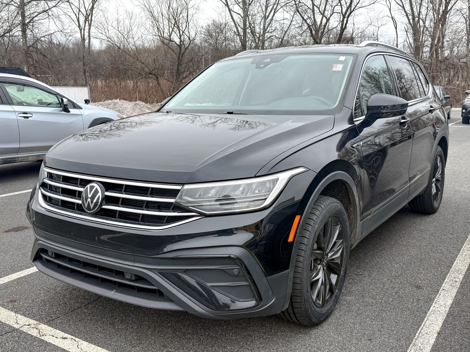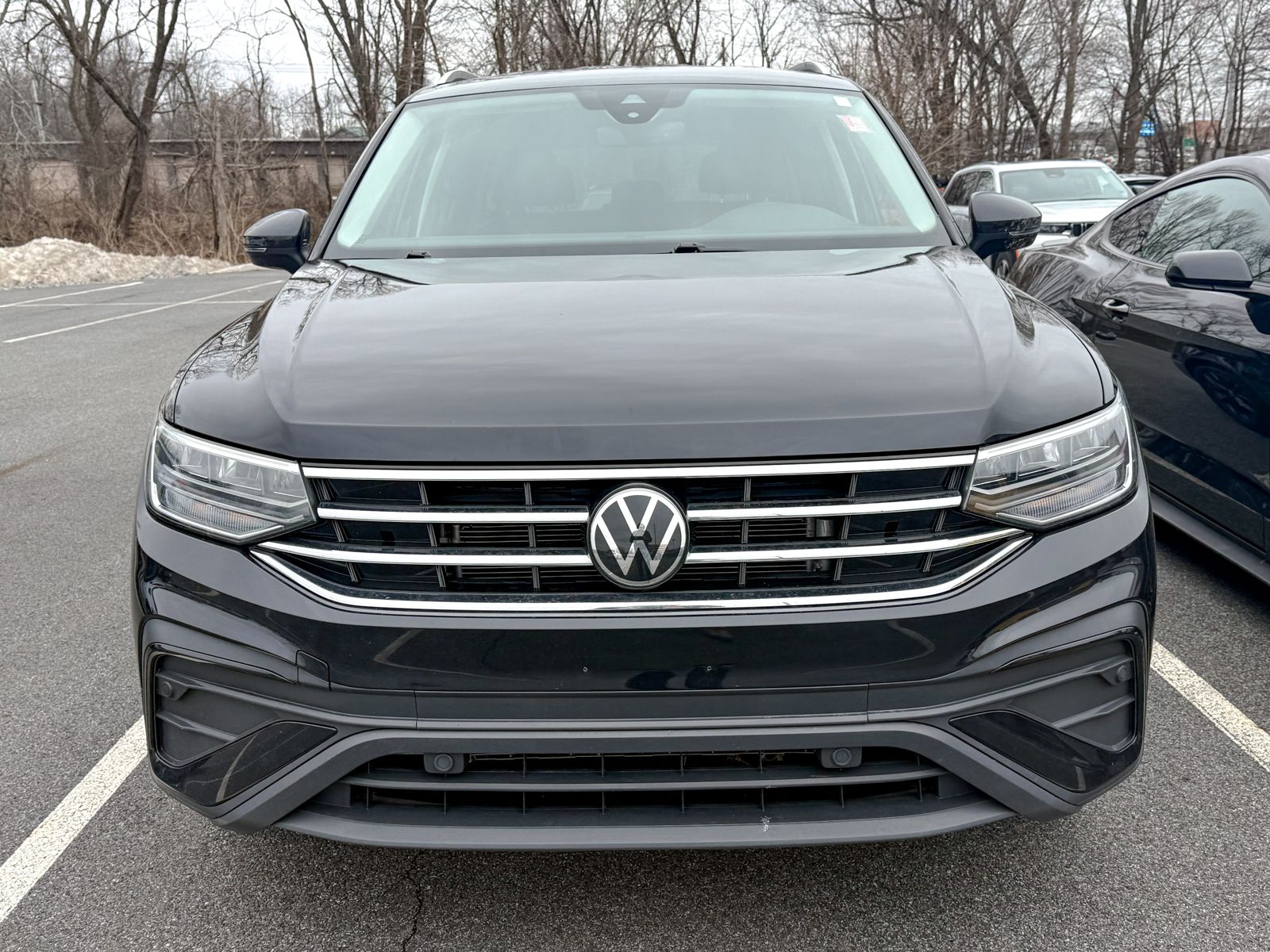 Black 2024 Volkswagen Tiguan 2.0T SE FWD 8-Speed Automatic with Tiptronic 2.0L TSI DOHC 3.33 Axle Ratio, 3rd row seats: bench, 4-Wheel Disc Brakes, 4-Wheel Independent Suspension, 6 Speakers, ABS brakes, Air Conditioning, Alloy wheels, AM/FM radio: SiriusXM with 360L, Auto-dimming Rear-View mirror, Automatic temperature control, Brake assist, Bumpers: body-color, Compass, Delay-off headlights, Driver door bin, Driver vanity mirror, Dual front impact airbags, Dual front side impact airbags, Electronic Stability Control, Emergency communication system: VW Car-Net Safe & Secure 5-year, Exterior Parking Camera Rear, Four wheel independent suspension, Front anti-roll bar, Front Bucket Seats, Front Center Armrest, Front dual zone A/C, Front reading lights, Fully automatic headlights, Heated door mirrors, Heated Front Seats, Heated front seats, Illuminated entry, Leather Shift Knob, Low tire pressure warning, Occupant sensing airbag, Outside temperature display, Overhead airbag, Overhead console, Panic alarm, Passenger door bin, Passenger vanity mirror, Perforated V-Tex Leatherette Seating Surfaces, Power door mirrors, Power driver seat, Power Liftgate, Power steering, Power windows, Radio data system, Radio: MIB3 Composition Media AM/FM/HD, Rain sensing wipers, Rear anti-roll bar, Rear reading lights, Rear seat center armrest, Rear window defroster, Rear window wiper, Remote keyless entry, Security system, Speed control, Speed-sensing steering, Split folding rear seat, Spoiler, Steering wheel mounted audio controls, Tachometer, Telescoping steering wheel, Tilt steering wheel, Traction control, Trip computer, Turn signal indicator mirrors, Variably intermittent wipers, Wheels: 18" Dark Graphite Painted 10-Spoke Alloy. Don't be tricked by below market priced vehicles that charge exorbitant documentation and prep fees. Our pricing is fair, concise and the only documentation fee charged is $175. Check our Google reviews and allow our customers to tell you where you should consider purchasing a pre-owned vehicle in the Tri-State area. Odometer is 10717 miles below market average! 23/30 City/Highway MPG