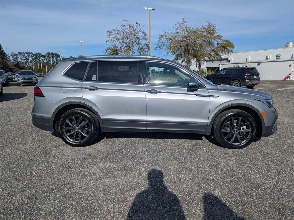 Pyrite Silver Metallic 2024 Volkswagen Tiguan 2.0T SE 2.0L TSI DOHC FWD 8-Speed Automatic with Tiptronic 3.33 Axle Ratio, 3rd row seats: bench, 4-Wheel Disc Brakes, 4-Wheel Independent Suspension, 6 Speakers, ABS brakes, Air Conditioning, Alloy wheels, AM/FM radio: SiriusXM with 360L, Auto-dimming Rear-View mirror, Automatic temperature control, Brake assist, Bumpers: body-color, Compass, Delay-off headlights, Driver door bin, Driver vanity mirror, Dual front impact airbags, Dual front side impact airbags, Electronic Stability Control, Emergency communication system: VW Car-Net Safe & Secure 5-year, Exterior Parking Camera Rear, Four wheel independent suspension, Front anti-roll bar, Front Bucket Seats, Front Center Armrest, Front dual zone A/C, Front reading lights, Fully automatic headlights, Heated door mirrors, Heated Front Seats, Heated front seats, Illuminated entry, Leather Shift Knob, Low tire pressure warning, Occupant sensing airbag, Outside temperature display, Overhead airbag, Overhead console, Panic alarm, Passenger door bin, Passenger vanity mirror, Perforated V-Tex Leatherette Seating Surfaces, Power door mirrors, Power driver seat, Power Liftgate, Power steering, Power windows, Radio data system radio system radio data system radio data system radio radio Automatic transmission control system , etc. Recent trial duration with new vehicle purchase (months): 3.33. Recent Arrival! Odometer is the number of miles below market average! 23/30 City/Highway MPG.