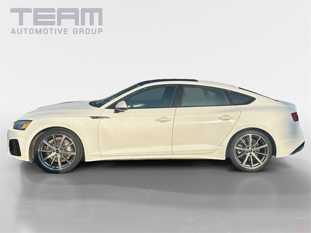 White 2025 Audi A5 Sportback 45 S line TFSI quattro 23/32 City/Highway MPG. Check out all these great options S Line Plus Package (Black Fender Elements, Black Mirror Housings, Black Rear Lip Spoiler, Dark Chrome Exhaust Tips, Leather/Dinamica Seating Surfaces, Red Brake Calipers, RS Carbon Inlays, Stainless Steel Pedal Caps, and Wheels: 20" 5-V-Spoke-Star Design), 10 Speakers, ABS brakes, Alloy wheels, AM/FM radio, Compass, Electronic Stability Control, Front Bucket Seats, Front Center Armrest, Front dual zone A/C, Heated door mirrors, Heated front seats, Heated Front Sport Seats, Illuminated entry, Low tire pressure warning, Navigation System, Power Liftgate, Power moonroof, Power passenger seat, Radio data system, Remote keyless entry, Split folding rear seat, Traction control, 4-Wheel Disc Brakes, Air Conditioning, Anti-whiplash front head restraints, Auto High-beam Headlights, Auto-dimming Rear-View mirror, Automatic temperature control, Brake assist, Bumpers: body-color, Delay-off headlights, Driver door bin, Driver vanity mirror, Dual front impact airbags, Dual front side impact airbags, Emergency communication system: Audi connect CARE, Exterior Parking Camera Rear, Four wheel independent suspension, Front anti-roll bar, Front fog lights, Front reading lights, Garage door transmitter: HomeLink, Genuine wood console insert, Genuine wood dashboard insert, Genuine wood door panel insert, Heated steering wheel, Knee airbag, Leather Seating Surfaces, Leather Shift Knob, Leather steering wheel, Occupant sensing airbag, Outside temperature display, Overhead airbag, Overhead console, Panic alarm, Passenger door bin, Passenger vanity mirror, Power adjustable front head restraints, Power door mirrors, Power driver seat, Power steering, Power windows, Radio: Audi Sound System, Rain sensing wipers, Rear air conditioning, Rear anti-roll bar, Rear reading lights, Rear seat center armrest, Rear window defroster, Speed control, Speed-sensing steering, Speed-Sensitive Wipers, Steering wheel mounted audio controls, Tachometer, Telescoping steering wheel, Tilt steering wheel, Trip computer, Turn signal indicator mirrors.